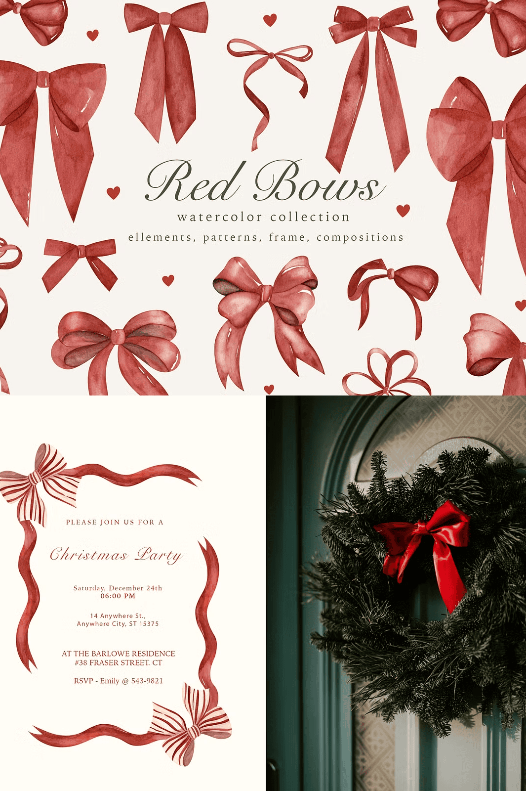 - 3 bow wreaths — decorative circular designs that serve as eye-catching focal points.