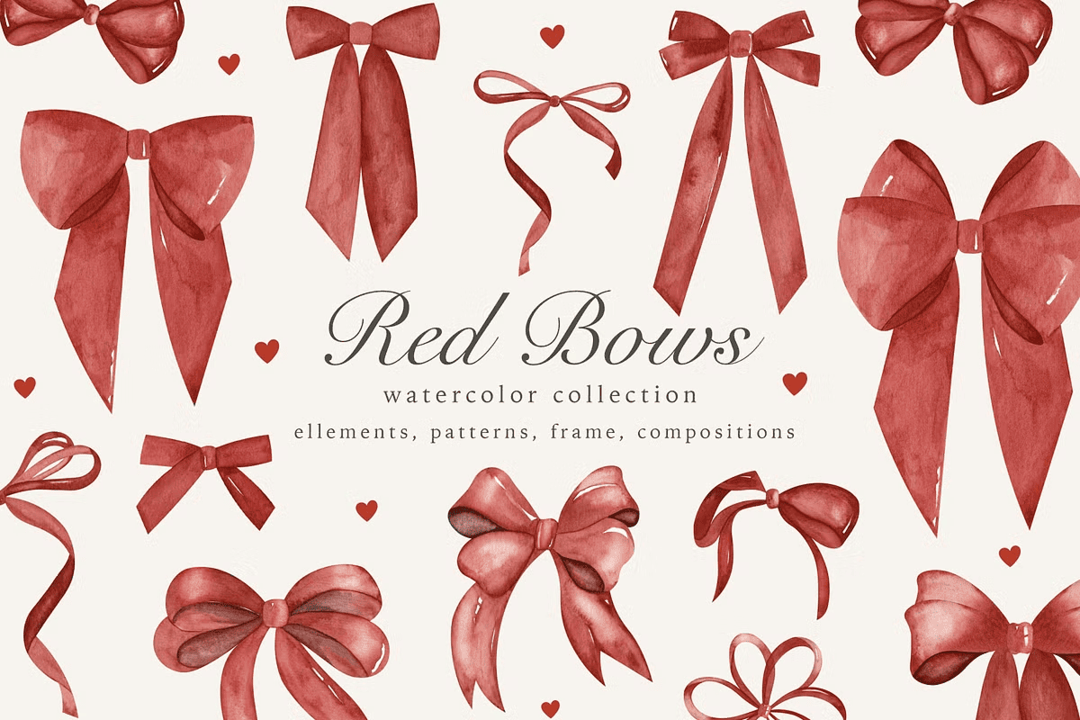 - 8 tiny bow elements — subtle details that enhance packaging, labels, and minimalist layouts.