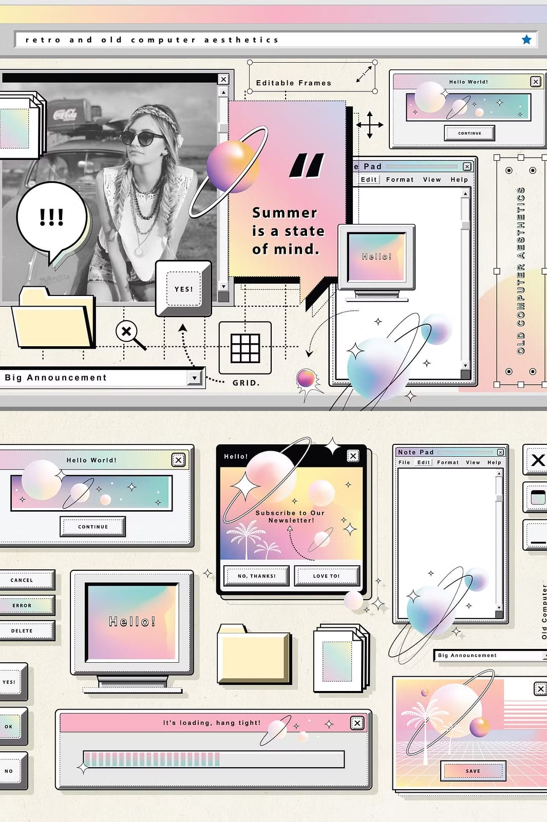 By exploring the vast variety of elements within this collection, you can create customized projects that truly stand out. Whether beautifying promotional flyers, crafting posters, or elevating social media visuals, these vaporwave-style graphics let you communicate vibrancy, nostalgia, and creativity in one powerful package. The Retro and Old Computer Aesthetics collection is the ultimate tool for anyone eager to capture and communicate the unique charm of the 80s and 90s digital culture.
