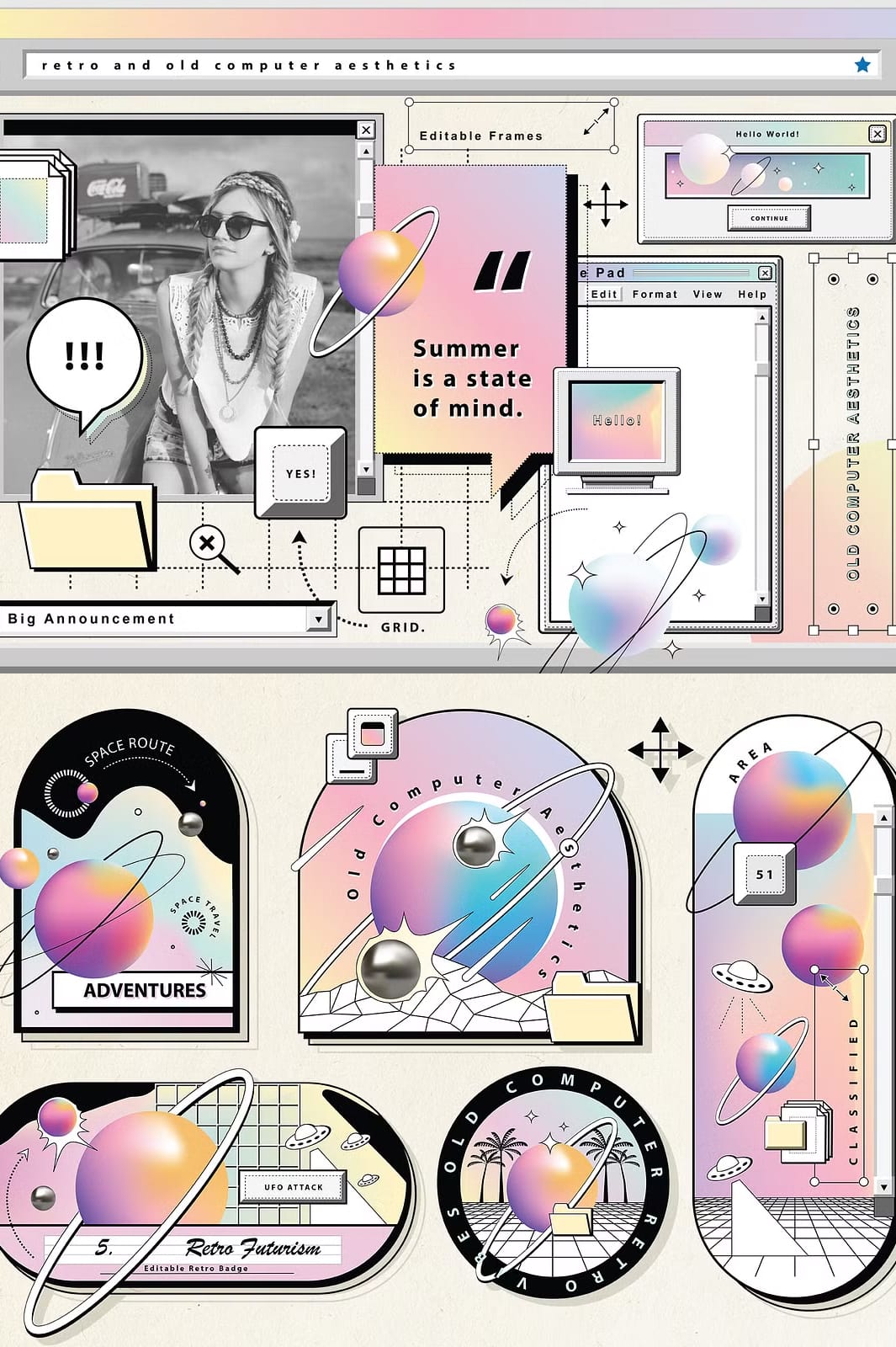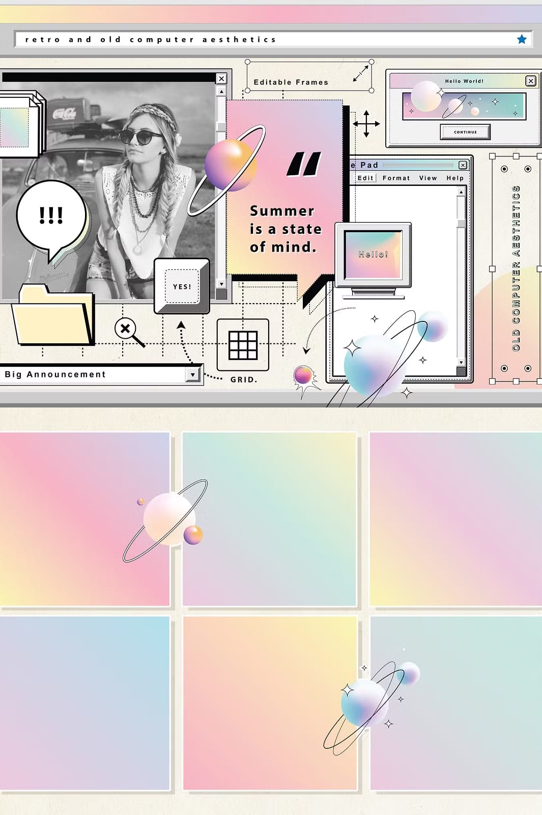 The Retro and Old Computer Aesthetics collection brings more than 80 distinctive elements that celebrate the vibrant holographic vaporwave style, delivering an engaging throwback to the dynamic era of the 80s and 90s. This collection invites you to unleash bold creativity by assembling fun-filled, imaginative collage compositions. Whether you’re designing retro-style flyers, posters, social media graphics, or website visuals, these elements empower you to produce truly eye-catching and nostalgic projects that evoke a sense of time-travel to a beloved past.
