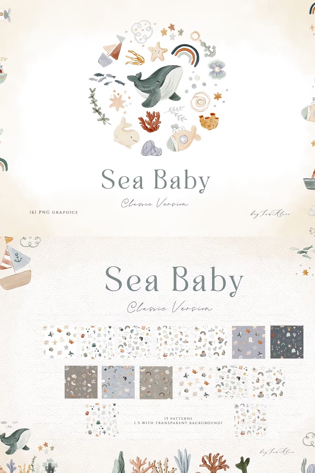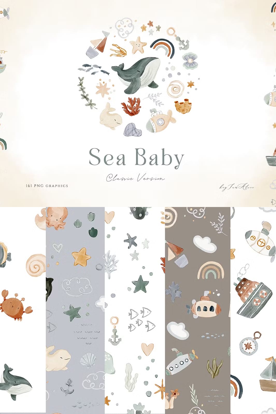 The versatility of the Sea Baby Watercolor Collection makes it ideal for numerous projects, including but not limited to: