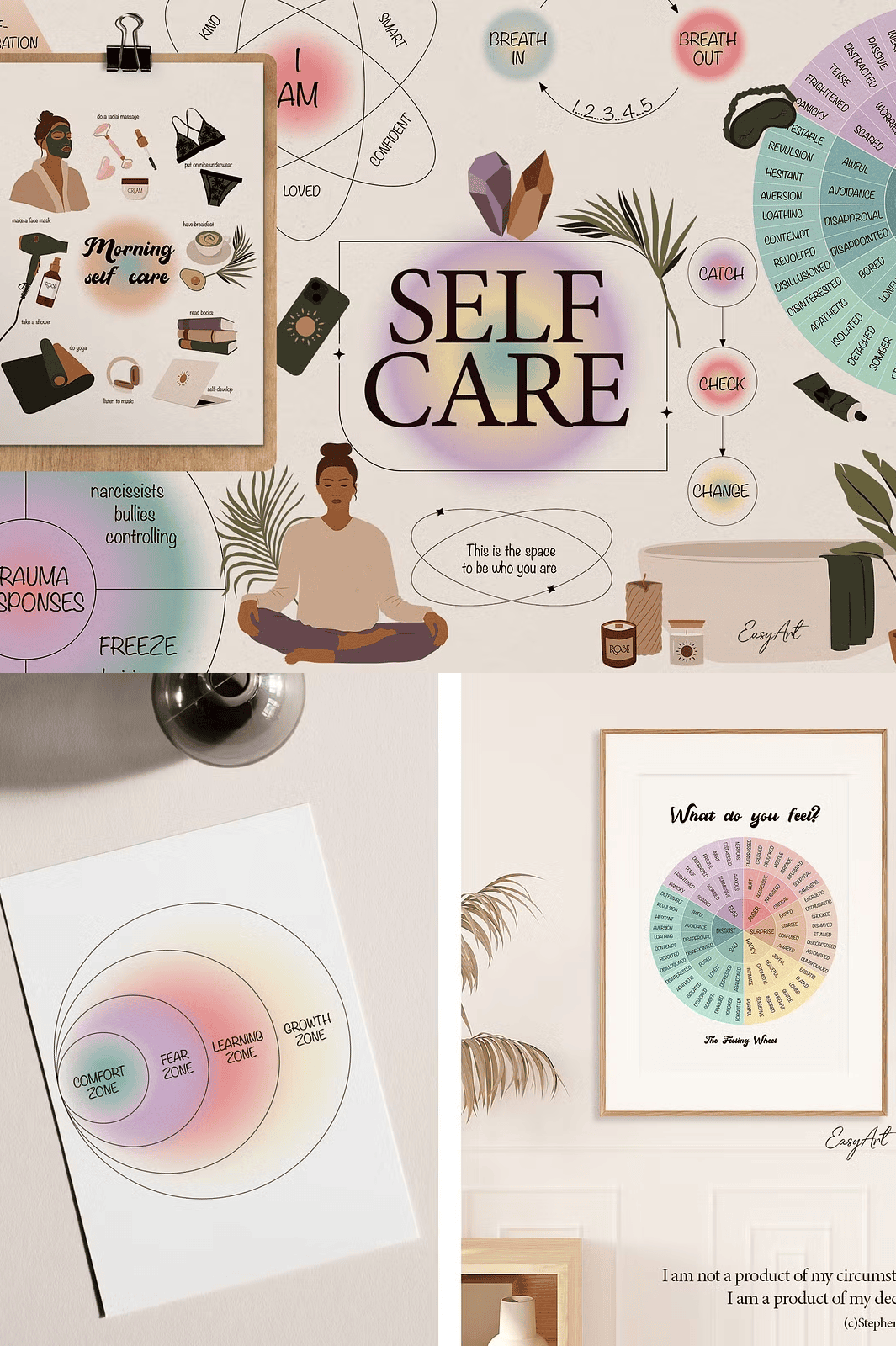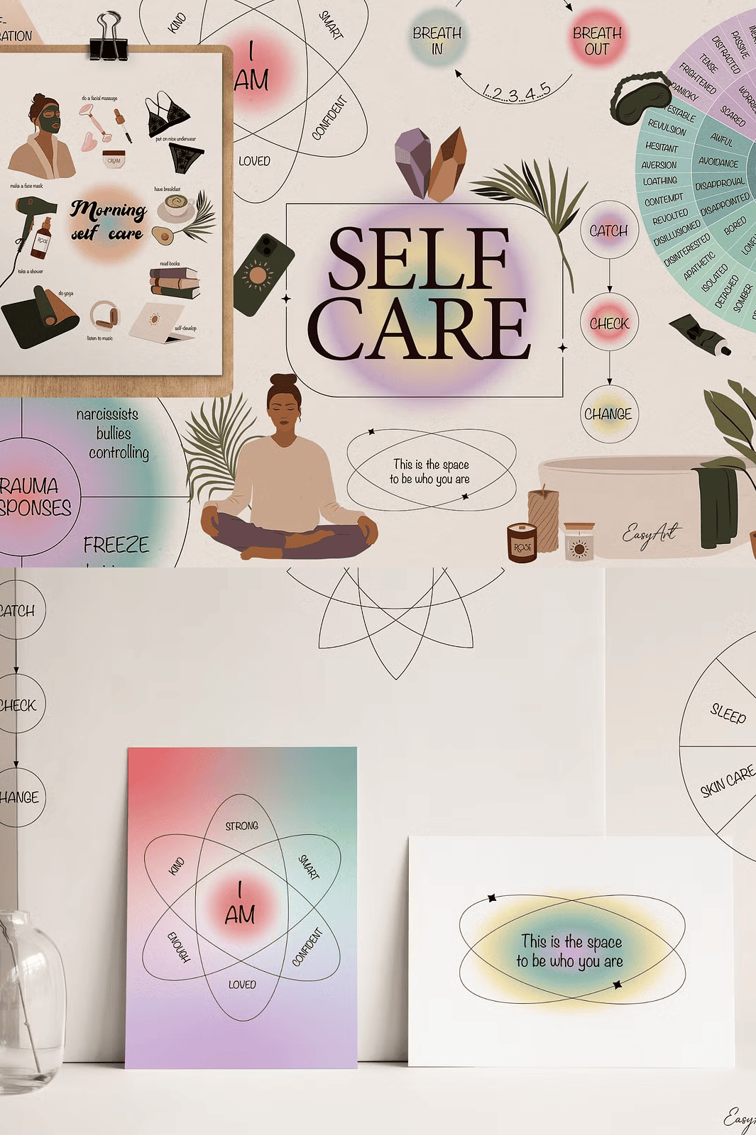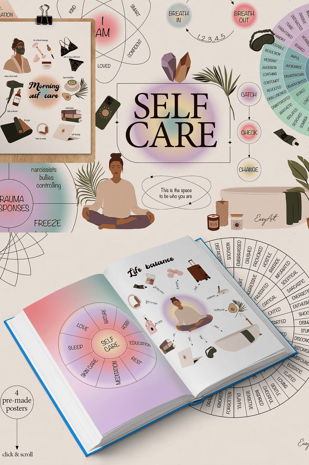 Unlock your creative potential with the **Self-Care Collection**, a powerful digital design set crafted for those who believe in the power of mindful living and emotional clarity. Inspired by Stephen Covey’s profound words—*“I am not a product of my circumstances. I am a product of my decisions.”*—this collection equips you with the tools to visually express resilience, self-awareness, and inner strength.