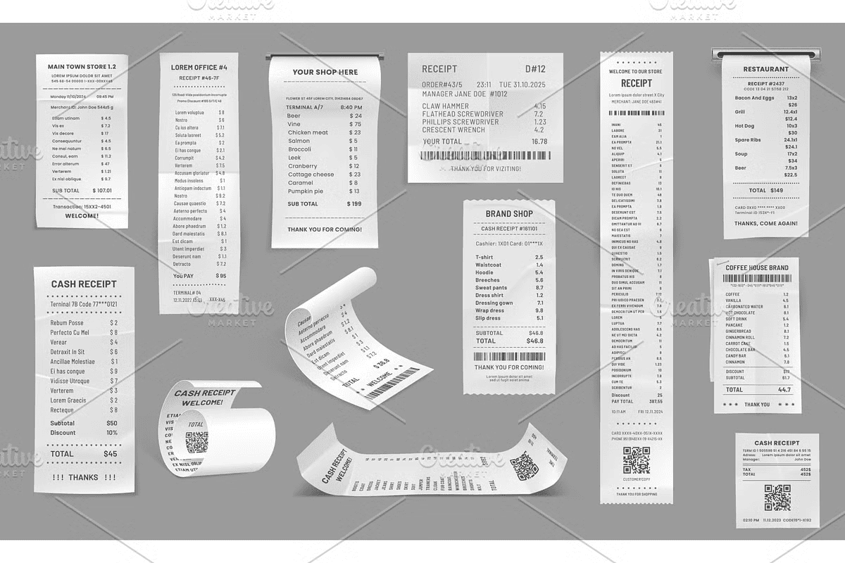 Make every transaction visual count. Download your authentic receipt vector set now and add unmatched realism to your next project.