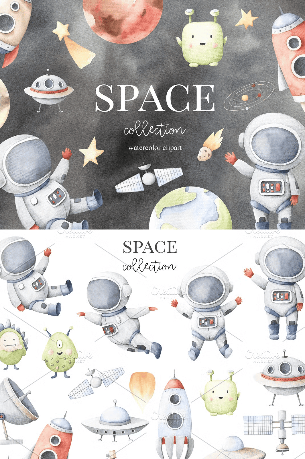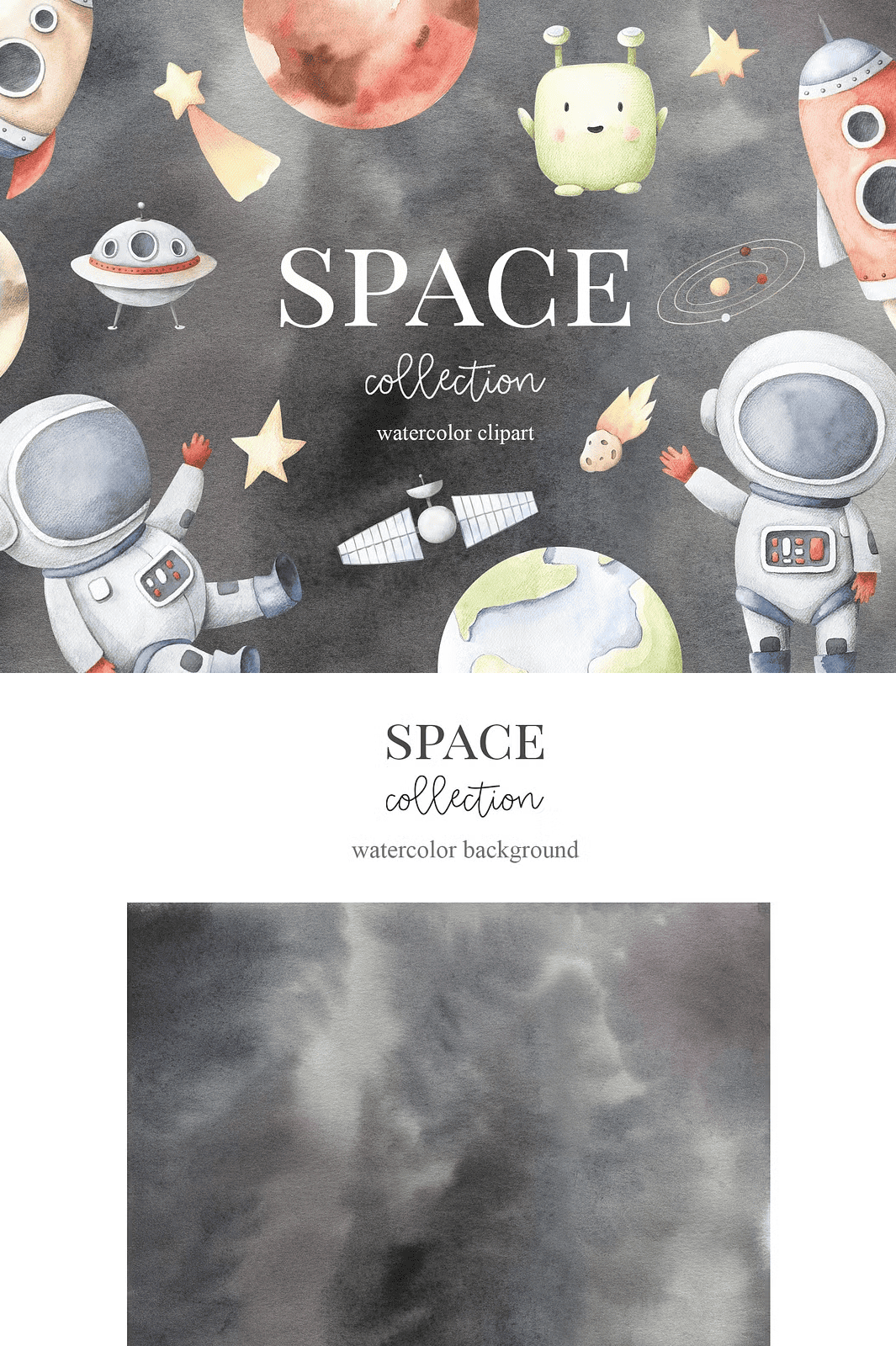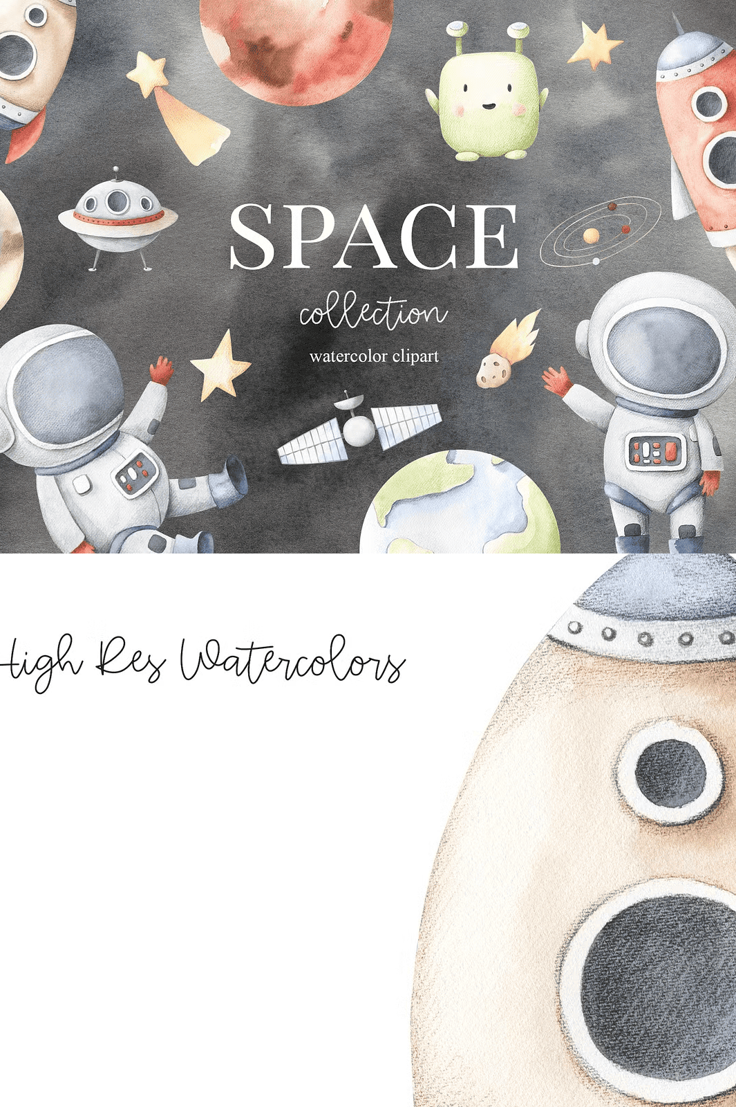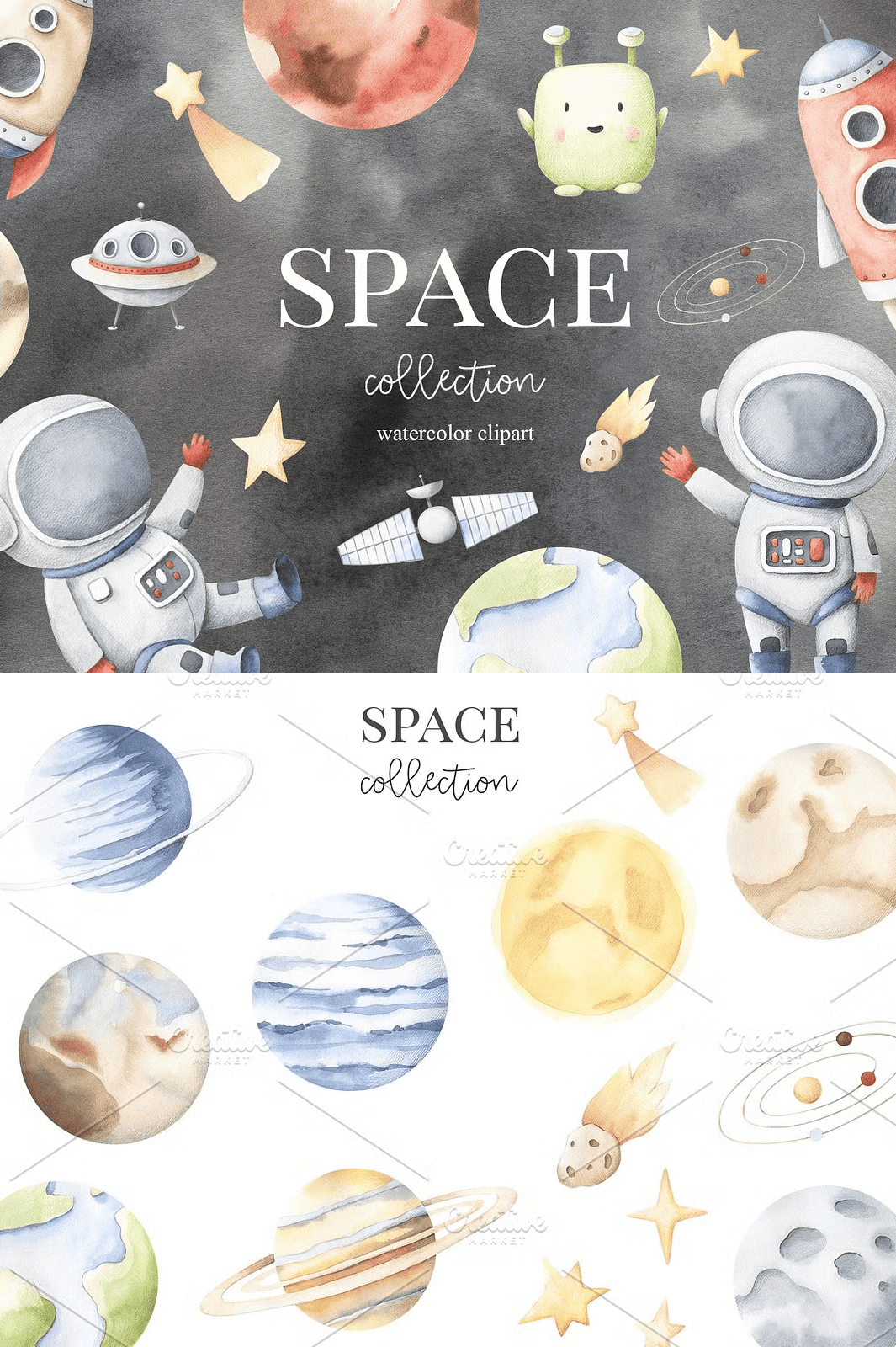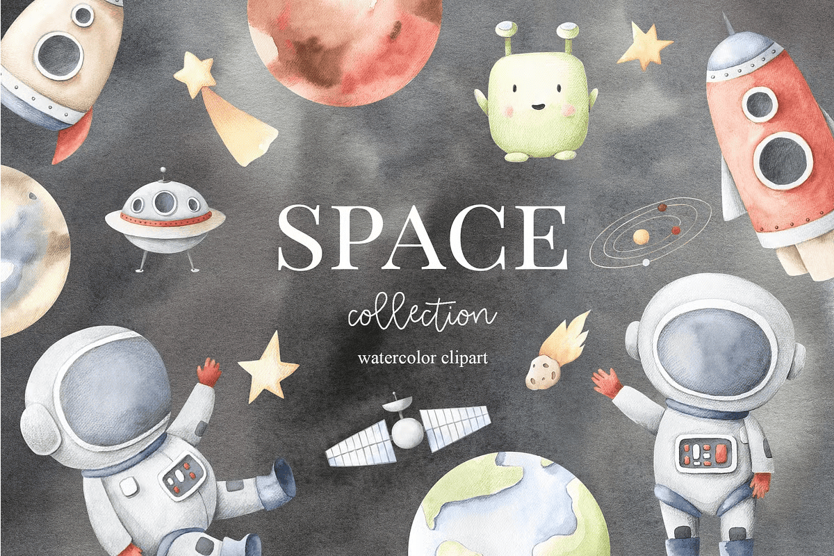 Let your creativity rocket beyond limits. Download the **Space Collection Watercolor Set** now and begin crafting magic among the stars.