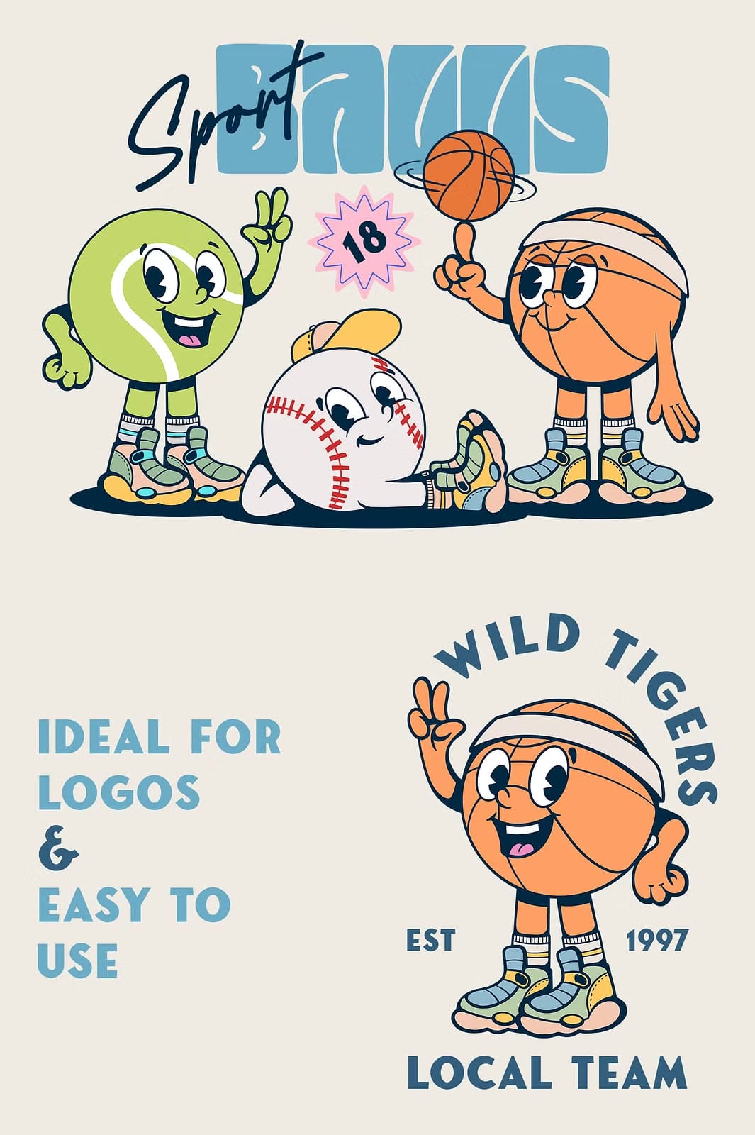 Jumpstart your project with immediate access to this comprehensive, multi-sport character library. With 18 meticulously designed sport ball characters ready for customization and use, your design process becomes faster, smoother, and more creative. Equip your sports projects with fresh, active visuals that truly connect with your audience and showcase your passion for sport through compelling imagery.