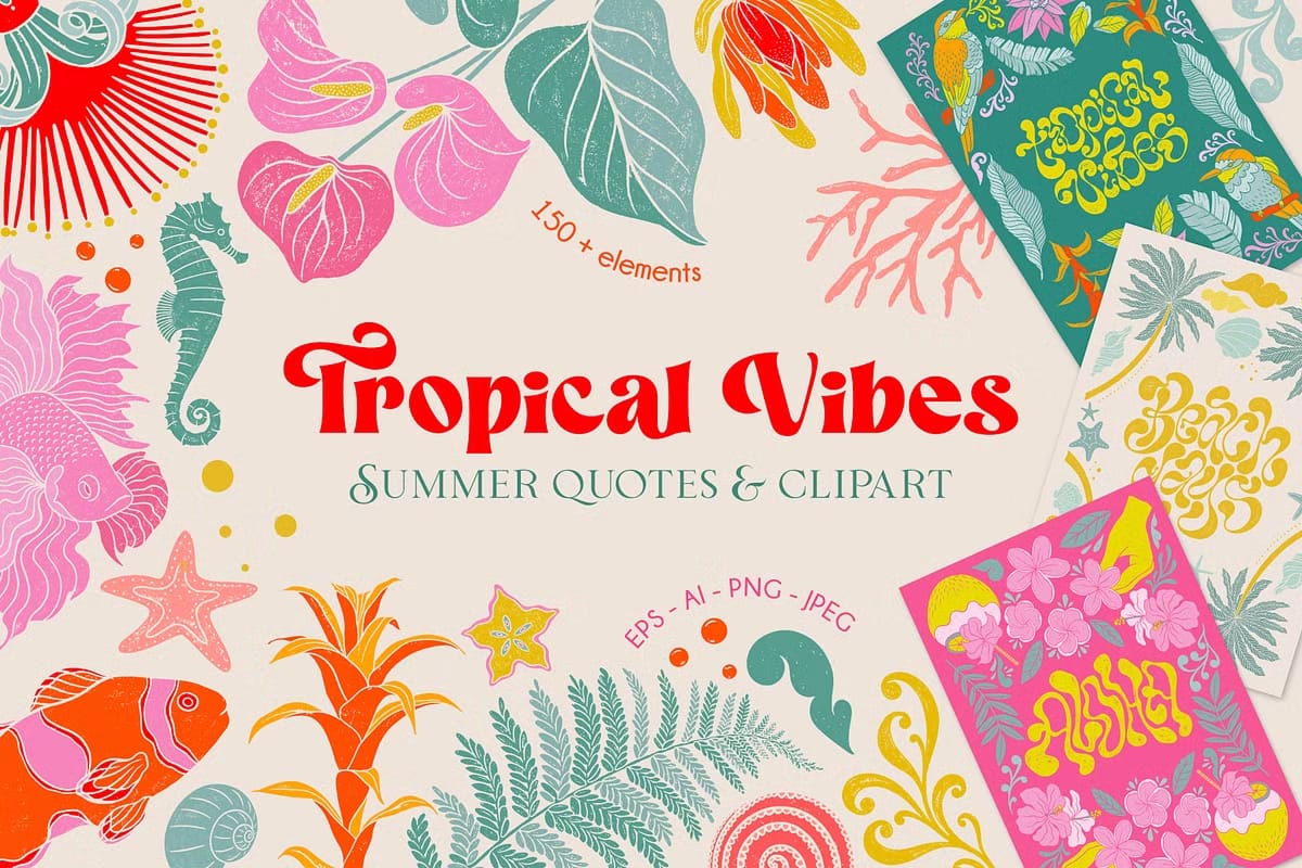 Create Unique and Colorful Summer Designs with Tropical Vibes Elements