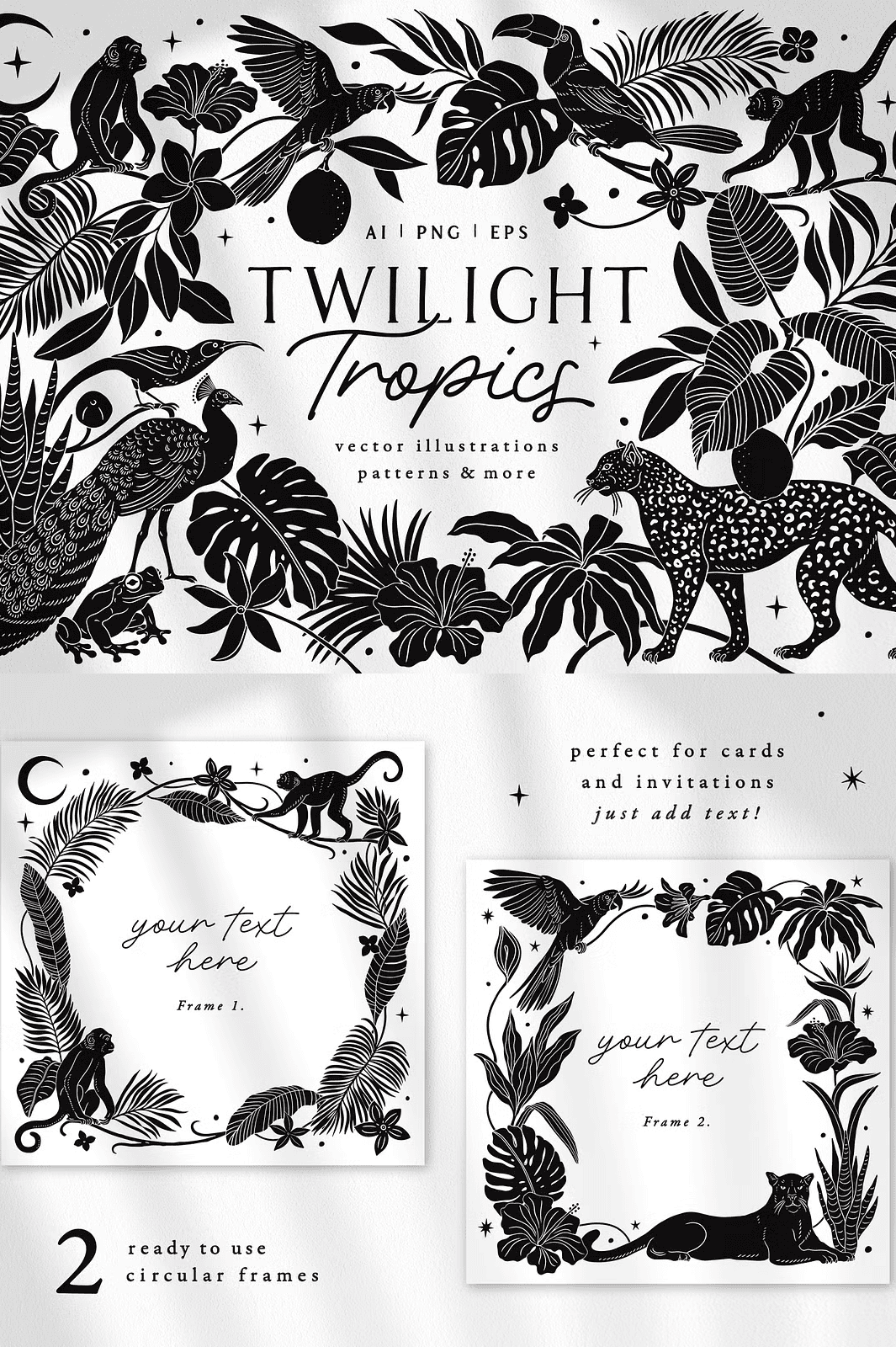 – Design **themed wedding or baby shower invitations** with jungle-inspired visuals and dramatic silhouettes.