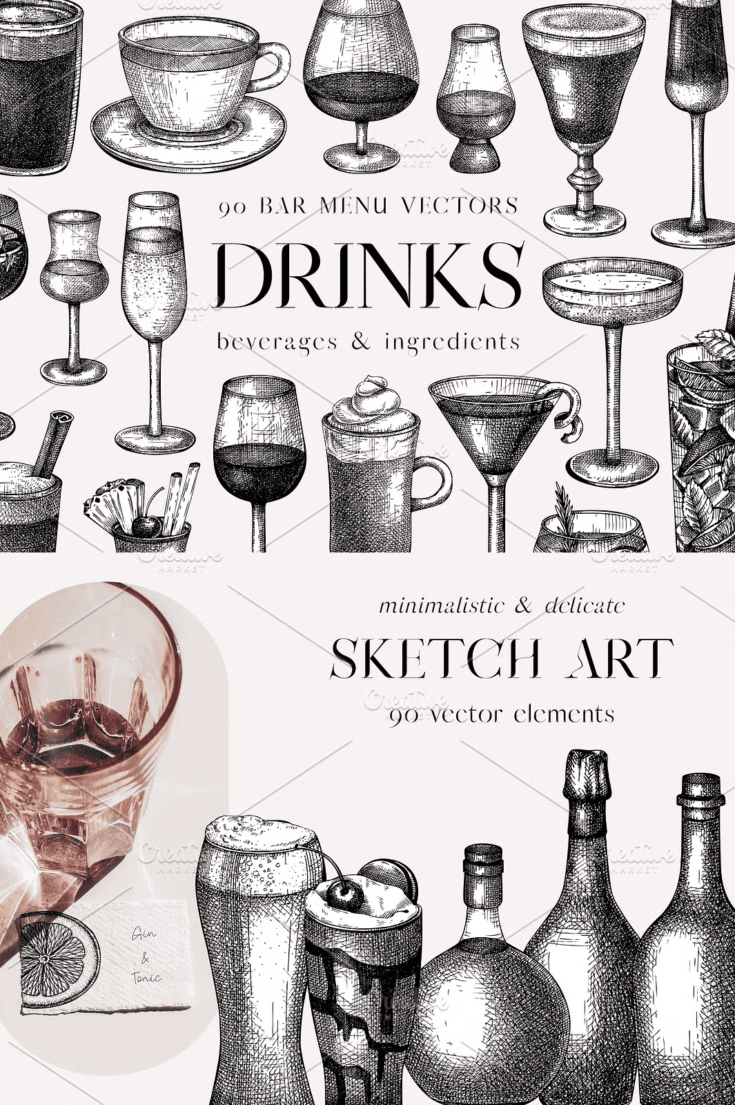 Stop searching for generic images. Start with handcrafted, professional vector illustrations that bring authenticity, beauty, and impact to every project. Download the Vector Drinks and Cocktails Sketches bundle today and elevate your visuals to new heights.
