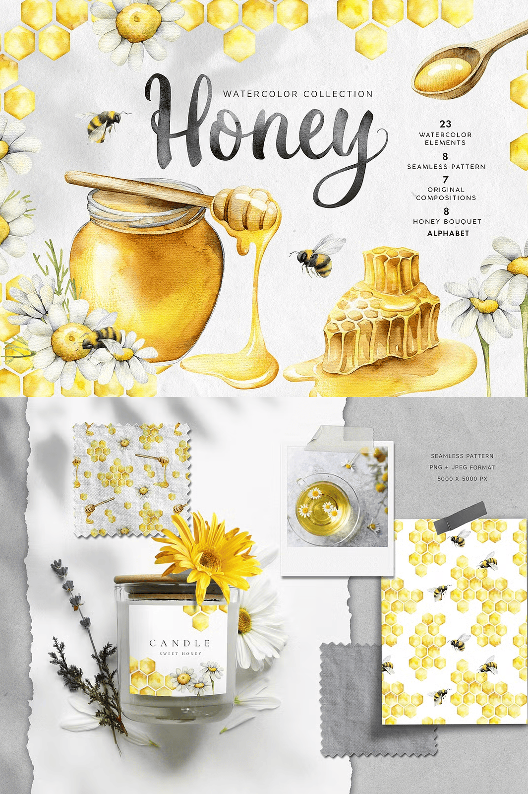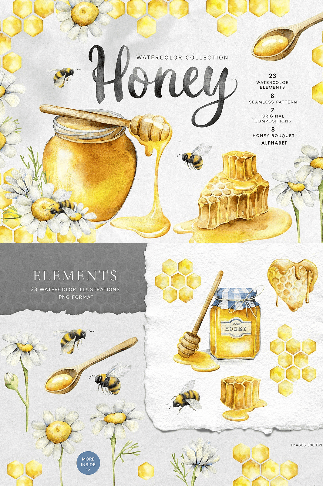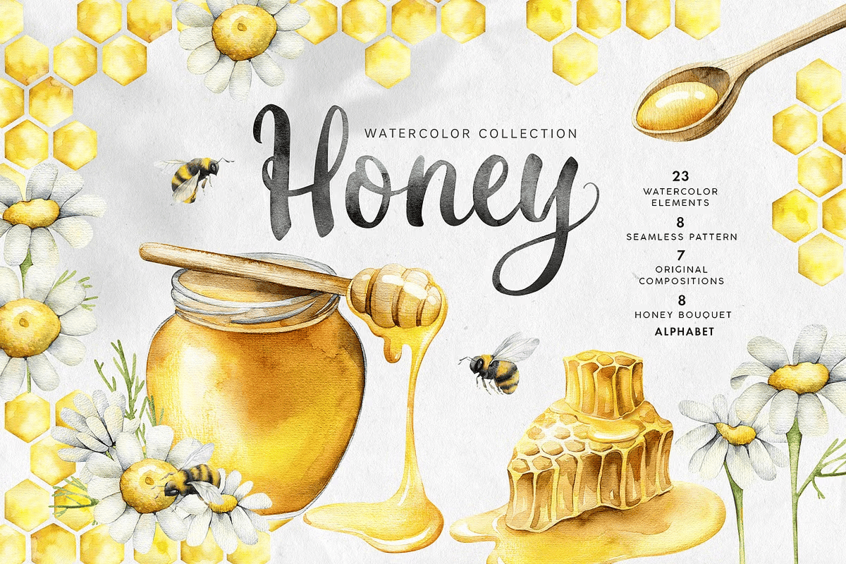 - 23 Watercolor Elements: High-resolution PNG files (300 DPI) with transparent backgrounds. Includes bees, daisies, honeycombs, baskets, and more.