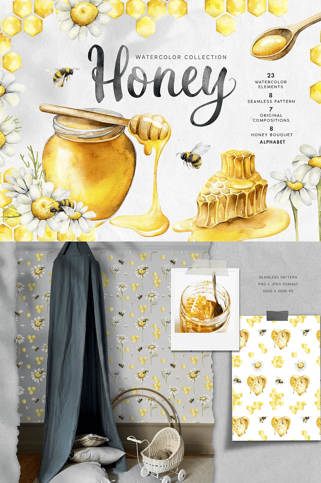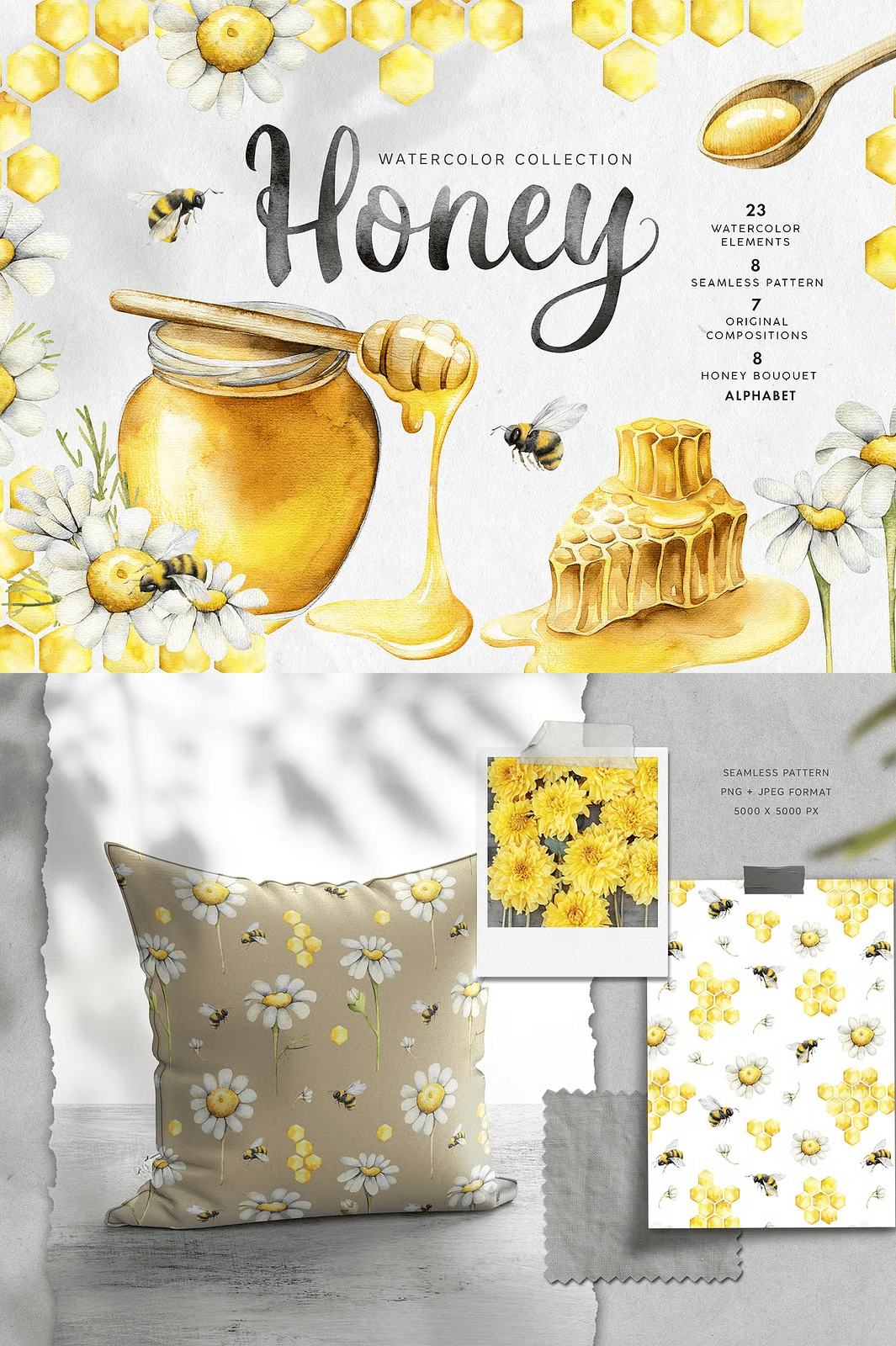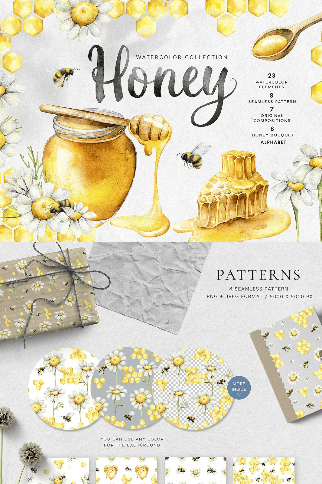 - 23 Watercolor Elements: High-resolution PNG files (300 DPI) with transparent backgrounds. Includes bees, daisies, honeycombs, baskets, and more.