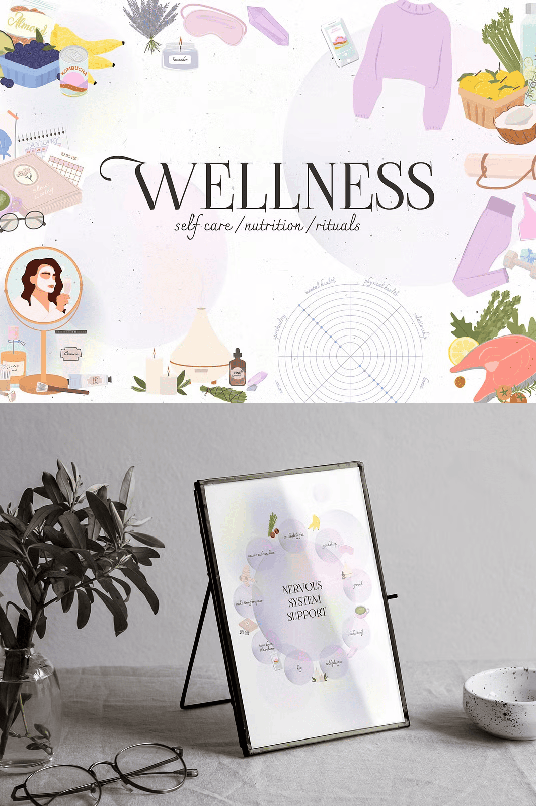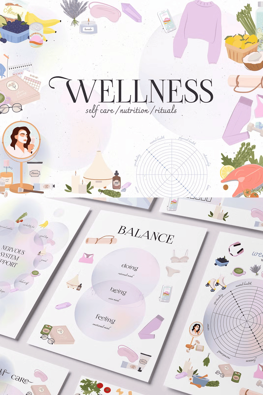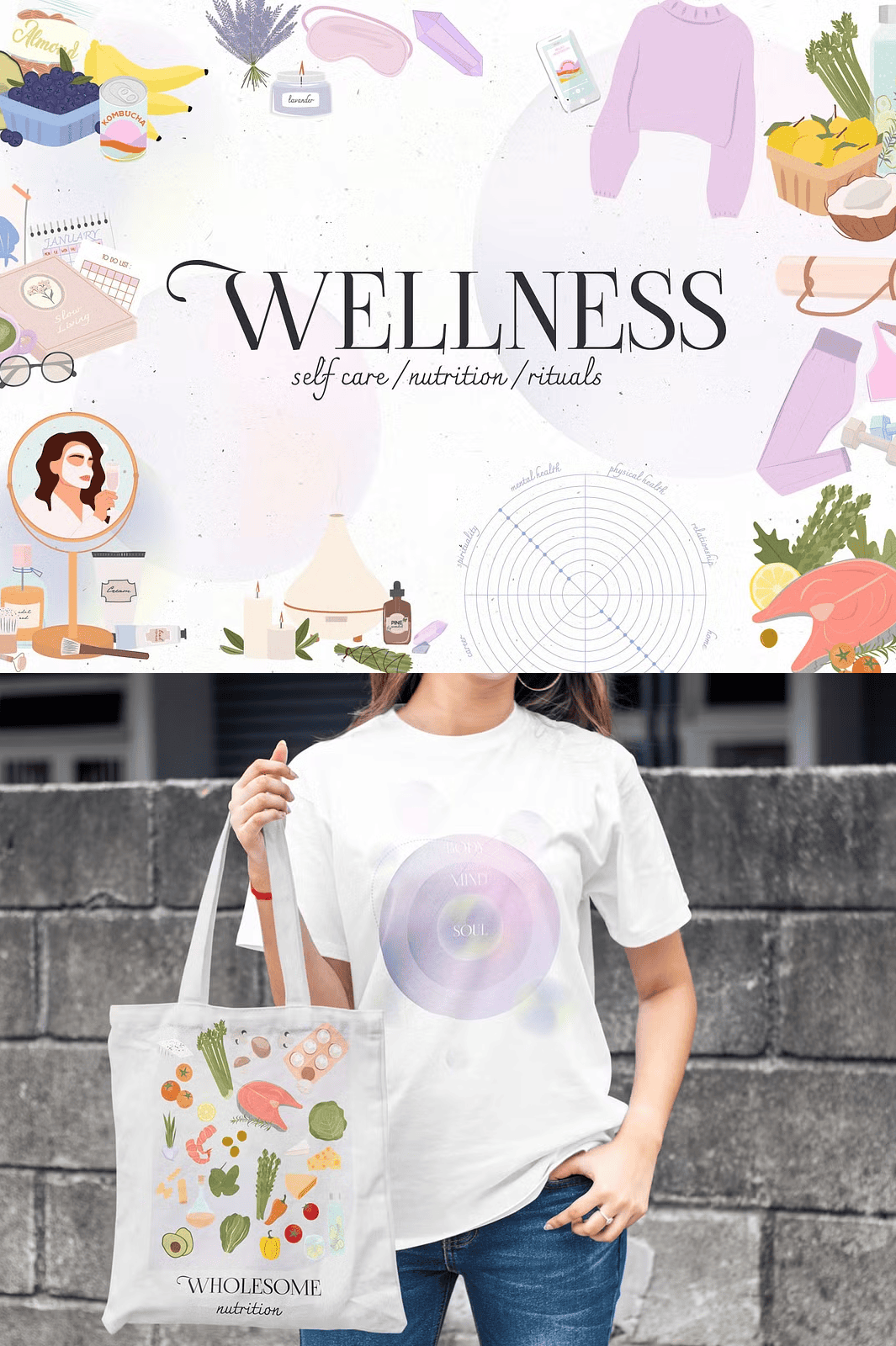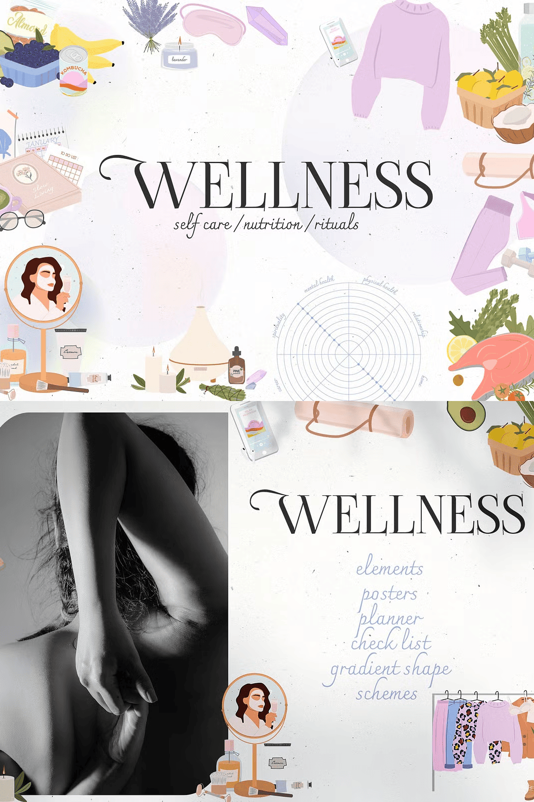 Each piece captures the essence of modern holistic wellness, blending aesthetic appeal with real-life authenticity.