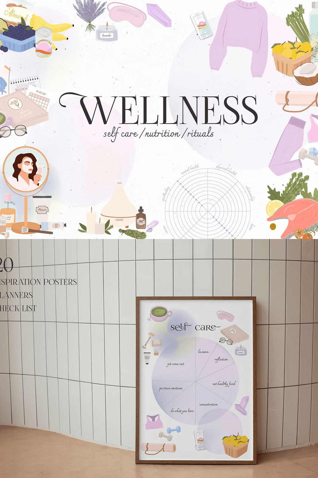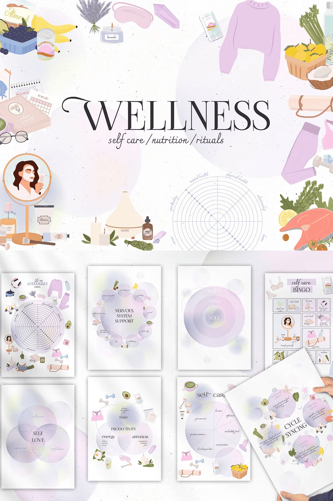 – **20 ready-made posters, planners, and checklists**: Pre-designed layouts for “Self-Care Sundays,” “Monthly Nutrition Goals,” “Yoga Flow Sequences,” and “Mindfulness Check-Ins.”