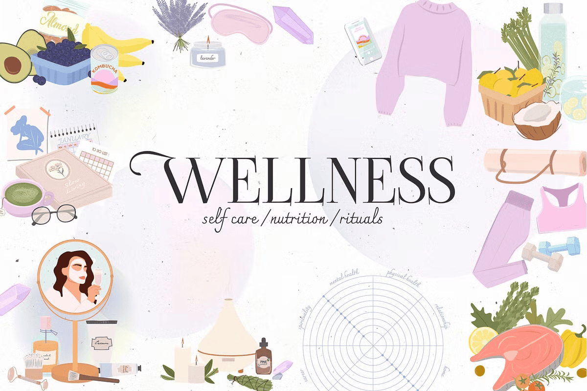 – **41 self-care illustrations**: Depicting meditation, skincare routines, journaling, digital detox, rest, and emotional grounding—ideal for wellness brands, therapy websites, and self-improvement content.