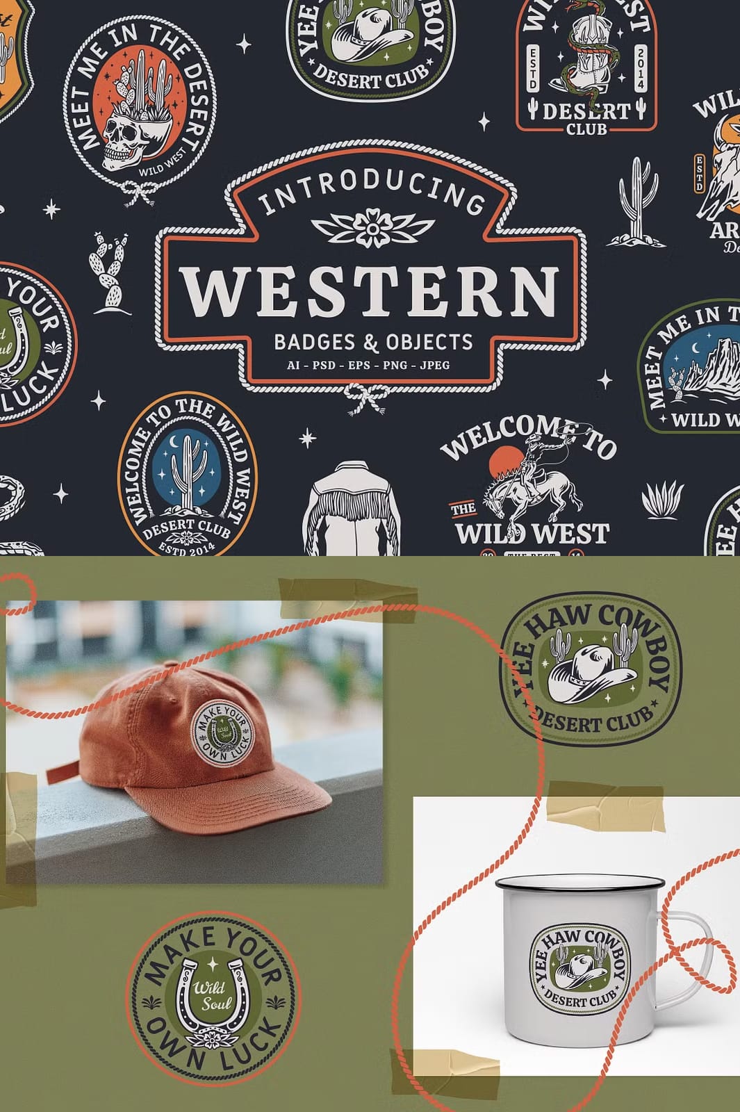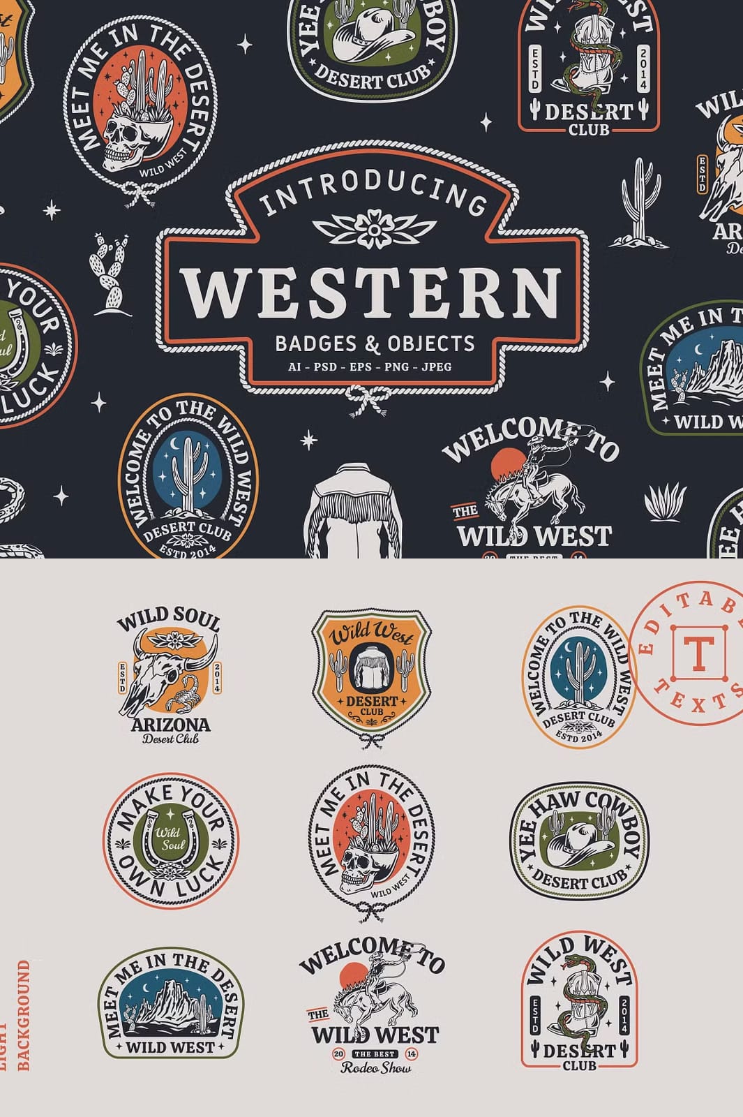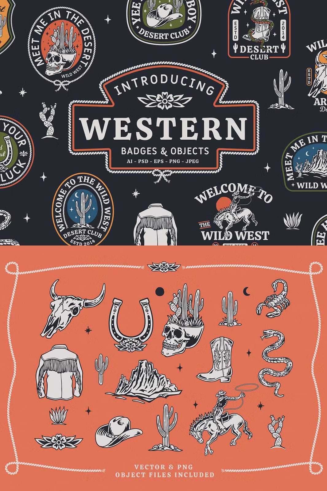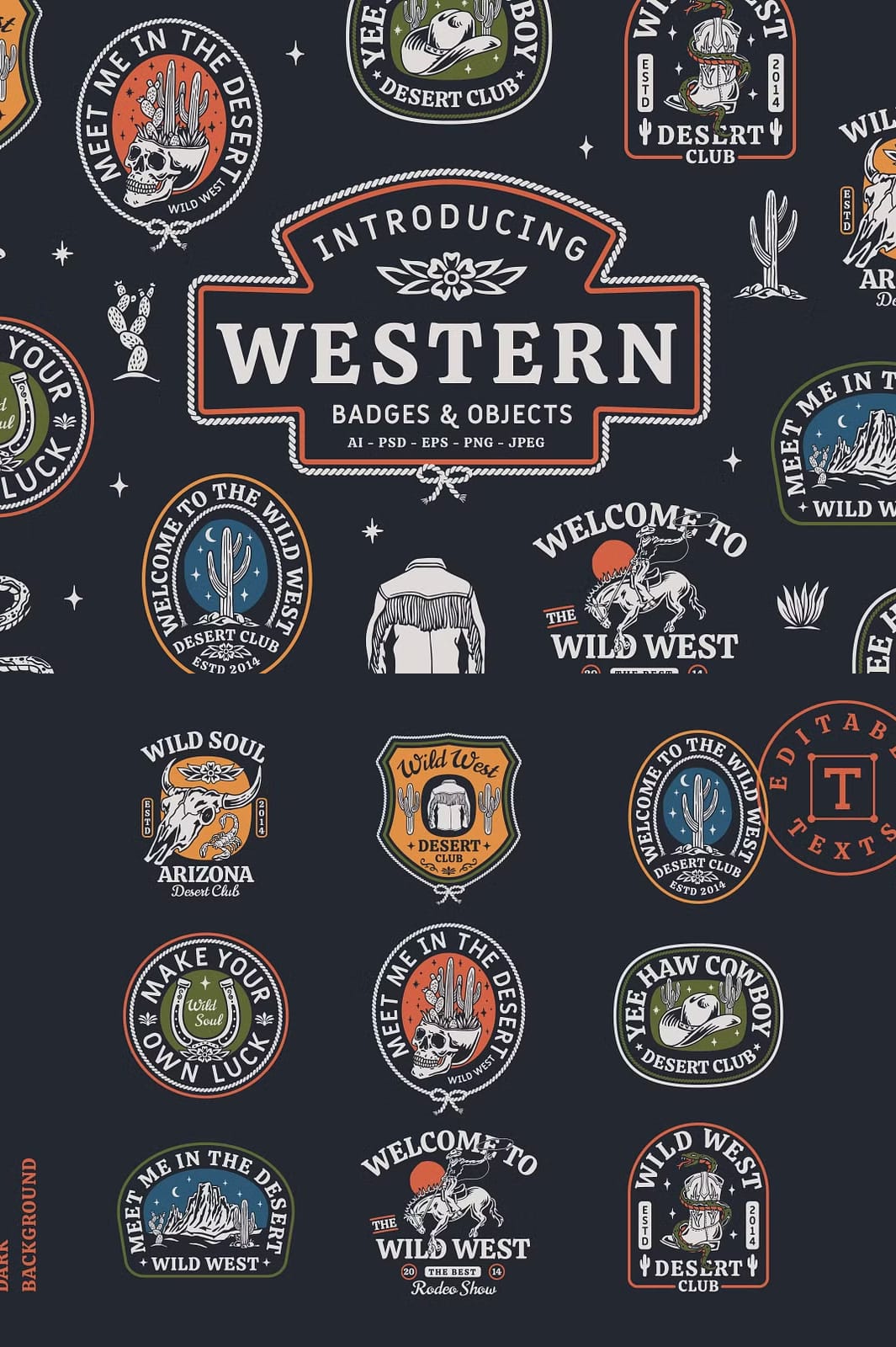 Start personalizing your creative projects today with this exceptional set of Western Badges and Objects. Designed to fuel your artistic expression, this collection equips you with the tools to craft standout designs that capture the spirit of the western lifestyle.
