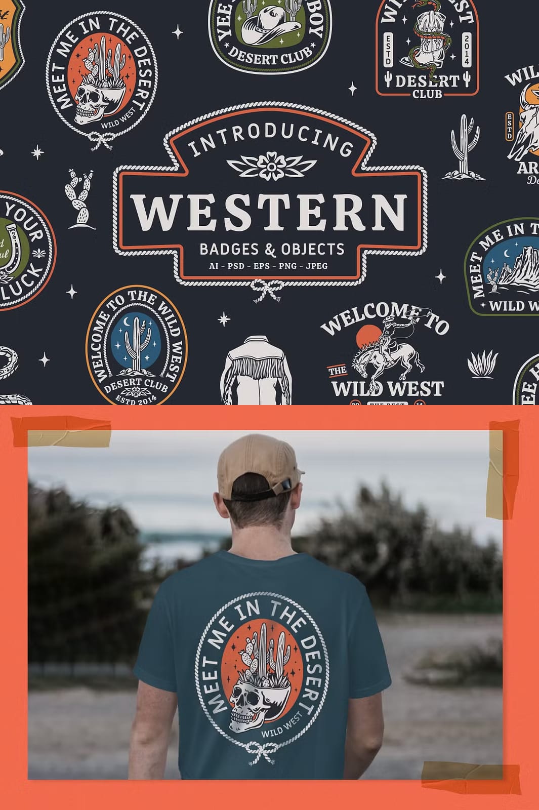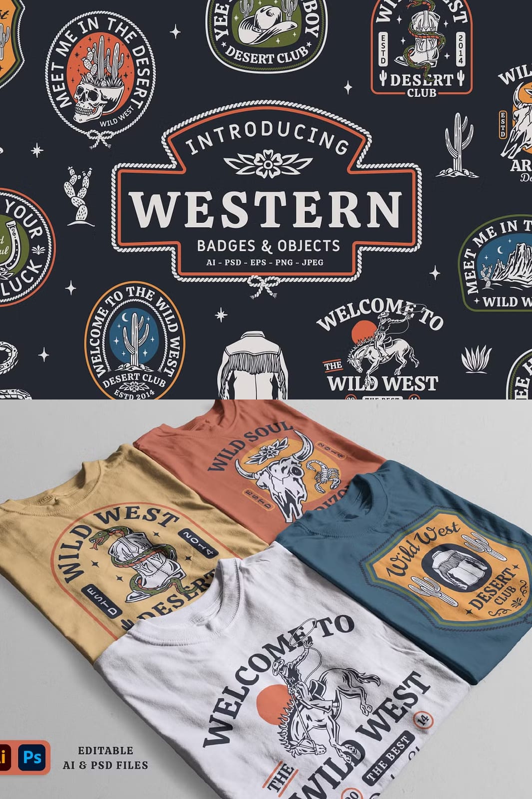 These western badges are perfect for numerous creative applications. Use them to design eye-catching t-shirt prints that resonate with western enthusiasts, craft compelling posters that evoke rustic charm, or produce unique mugs that showcase your personalized style. Their adaptability extends to other merchandise, promotional items, and branding collateral, empowering you to elevate your designs with authentic western flair.