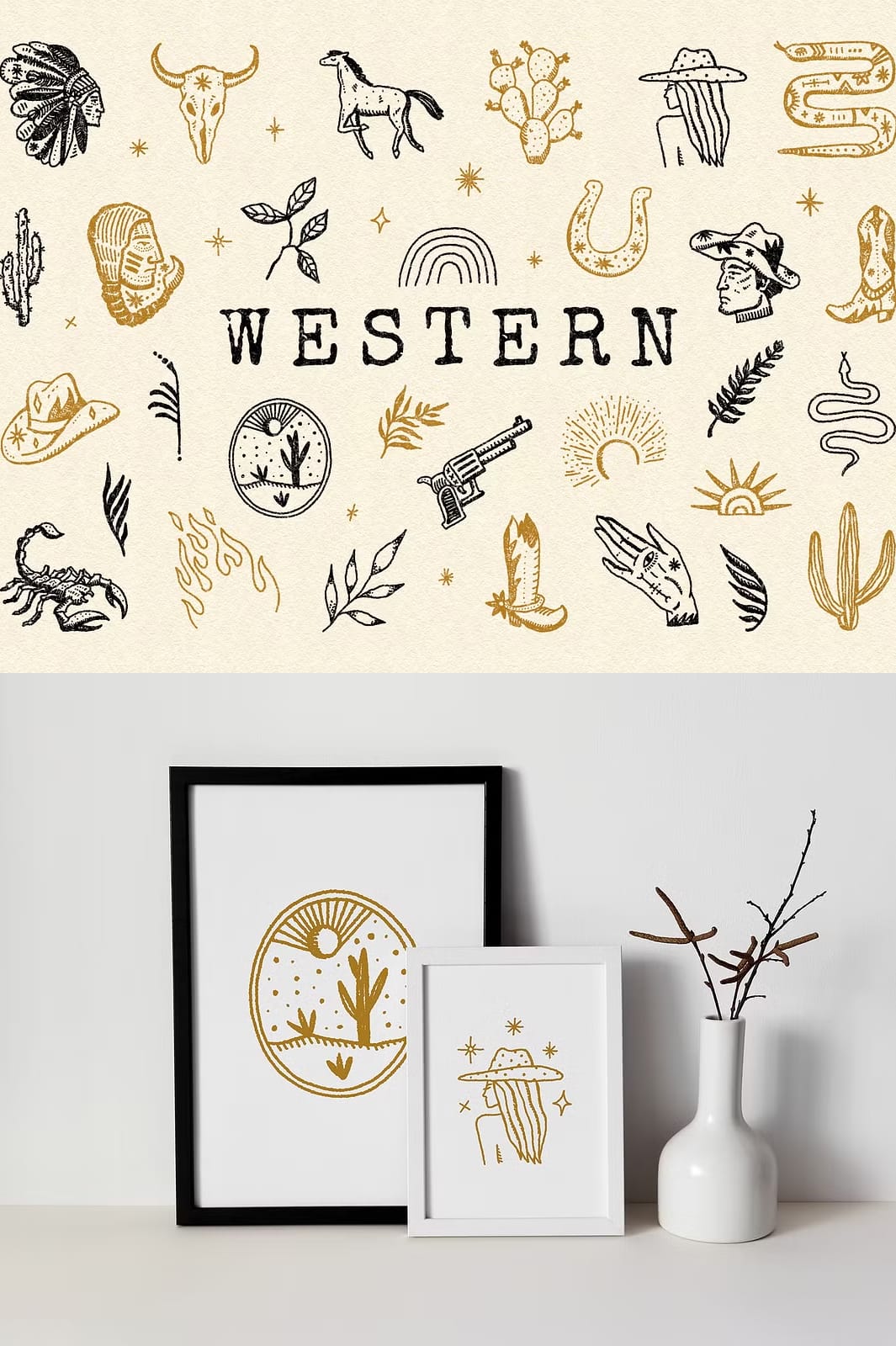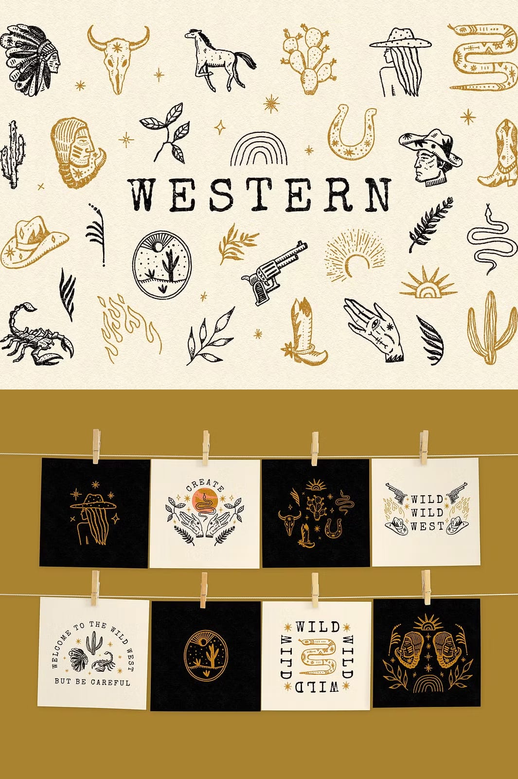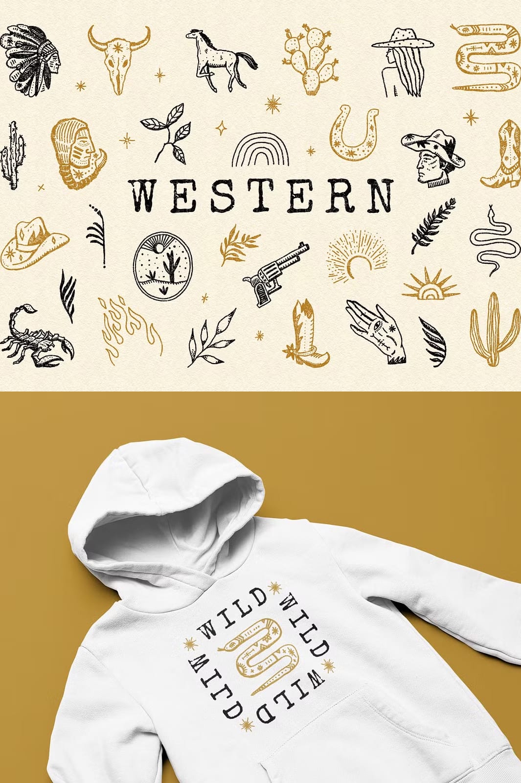 Expand your creative possibilities with this collection designed for diverse uses. It fits perfectly for clothing prints, tattoos, jewelry designs, logos, branding efforts, book illustrations, posters, postcards, stickers, social media posts, stories highlight icons, mobile app graphics, and many more. This versatility makes the Western Bundle a must-have resource for creative professionals working across industries.