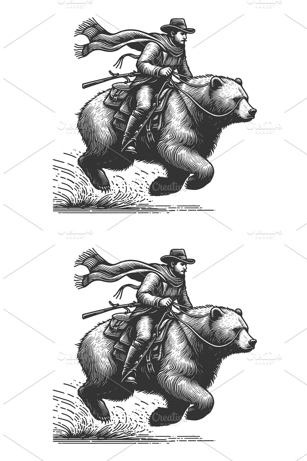 Unlock the power of this compelling Wild West Cowboy Riding Bear illustration and incorporate its iconic imagery into your next project. Click the download button below to access the full vector files and begin creating bold, authentic western art with ease and precision.