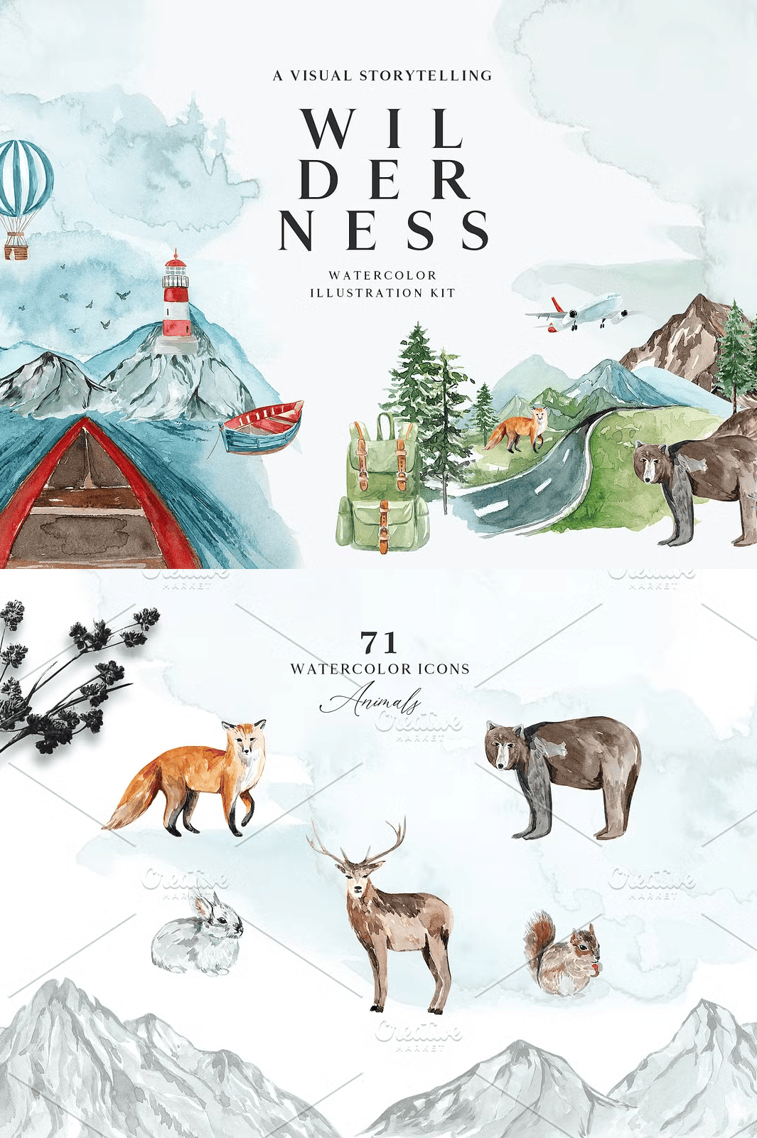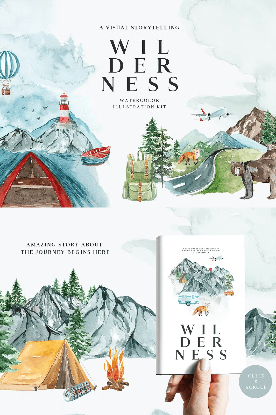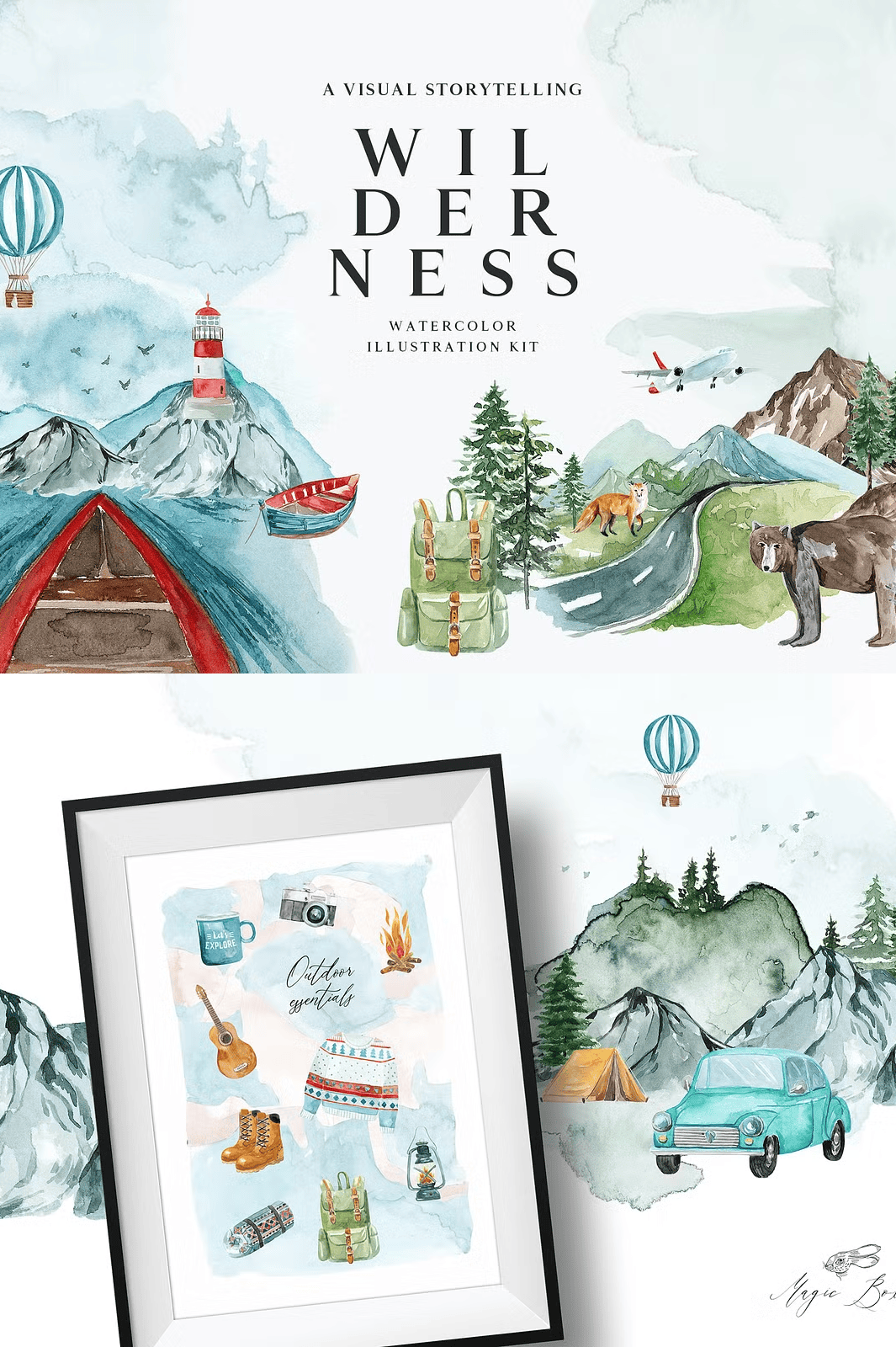 Step into the world of adventure with the Wilderness Visual Storytelling Collection, meticulously designed for travelers, hikers, and all outdoor enthusiasts. This expansive set of 129 high-quality, hand-drawn elements and watercolor illustrations invites you to craft your own vivid tales—whether it’s a road trip, a weekend getaway, a honeymoon, or a camping gathering around the bonfire. Capture your journeys in expressive visuals, design memorable posters, postcards, and logos, or give personalized gifts that tell a story.