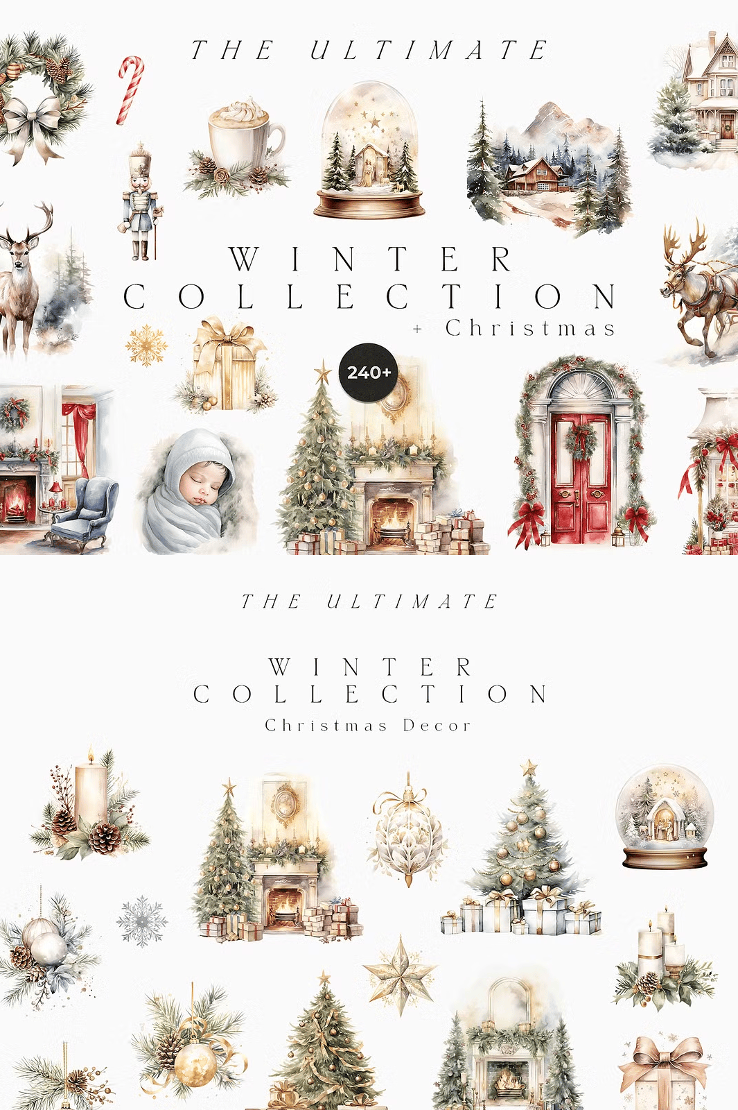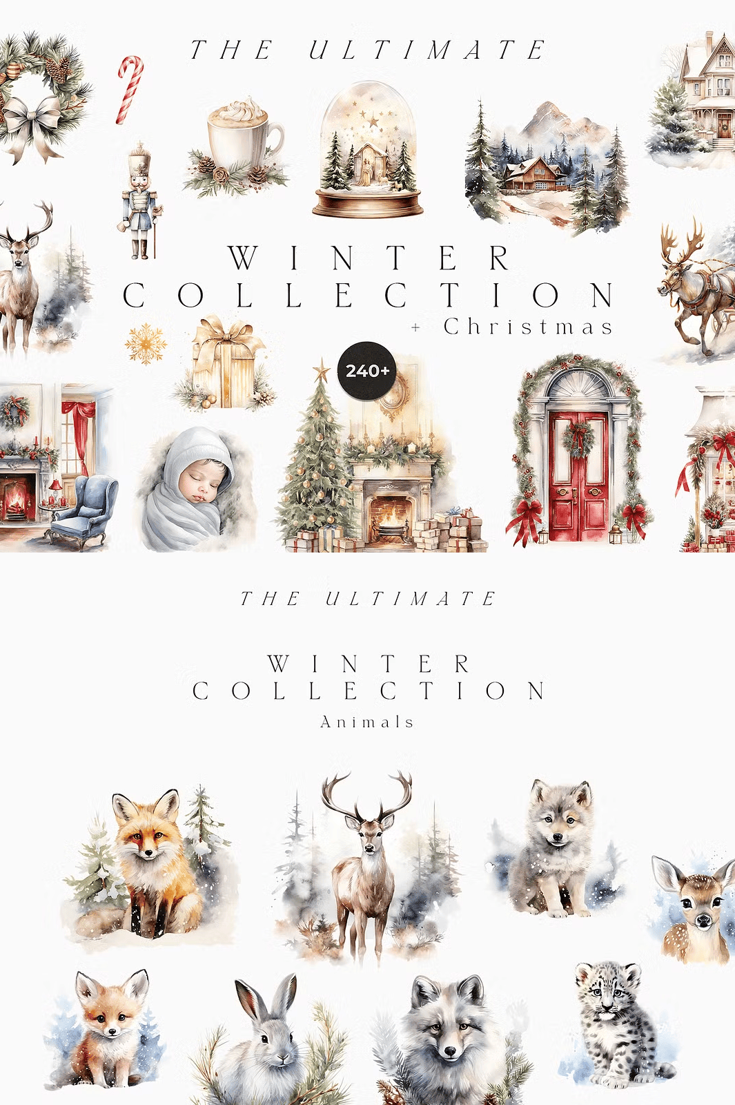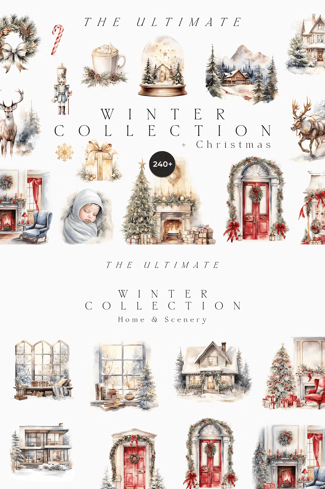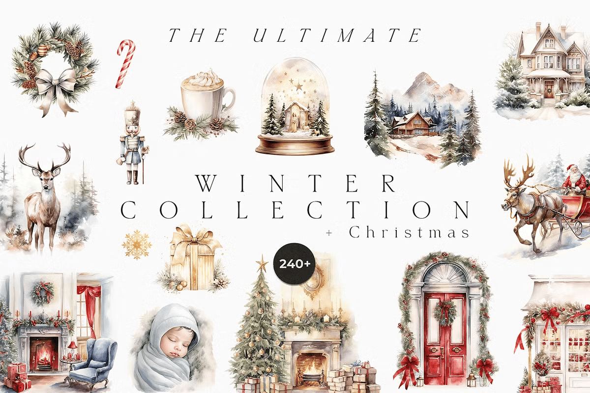 Transform your holiday projects with the **Ultimate Winter Collection + Christmas**—a meticulously crafted digital bundle featuring over 240 hand-painted, high-resolution watercolor illustrations. Designed in a soft, muted winter palette, this collection radiates quiet elegance and seasonal warmth. Every element is crafted for instant impact—perfect for wedding invitations, festive greeting cards, branding materials, and timeless stationery. From snow-dusted trees to cozy woodland scenes, these illustrations capture the soul of winter with delicate brushstrokes, rich textures, and timeless charm.
