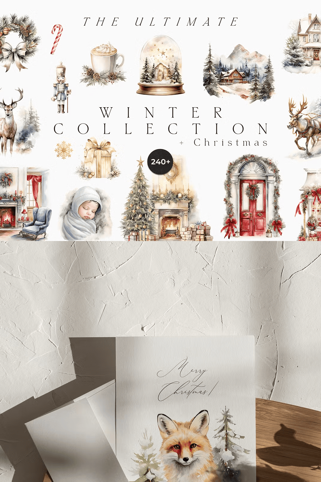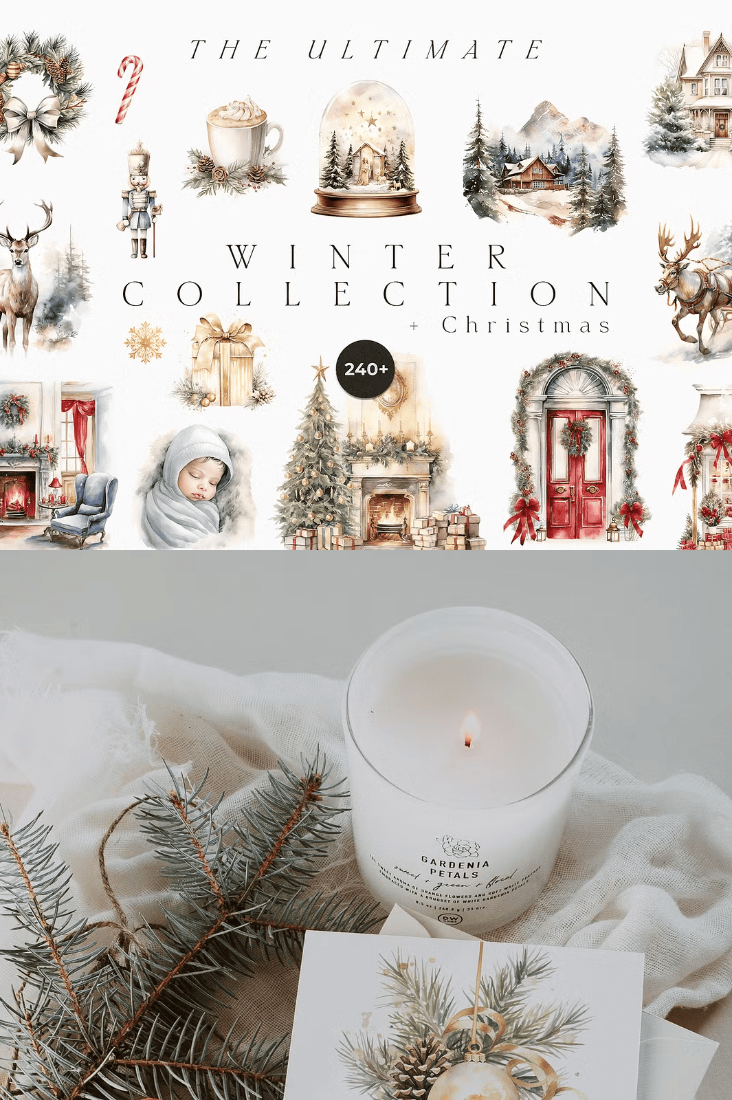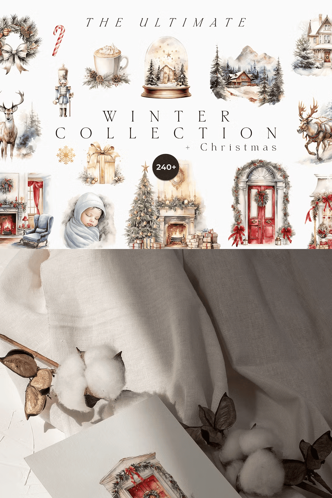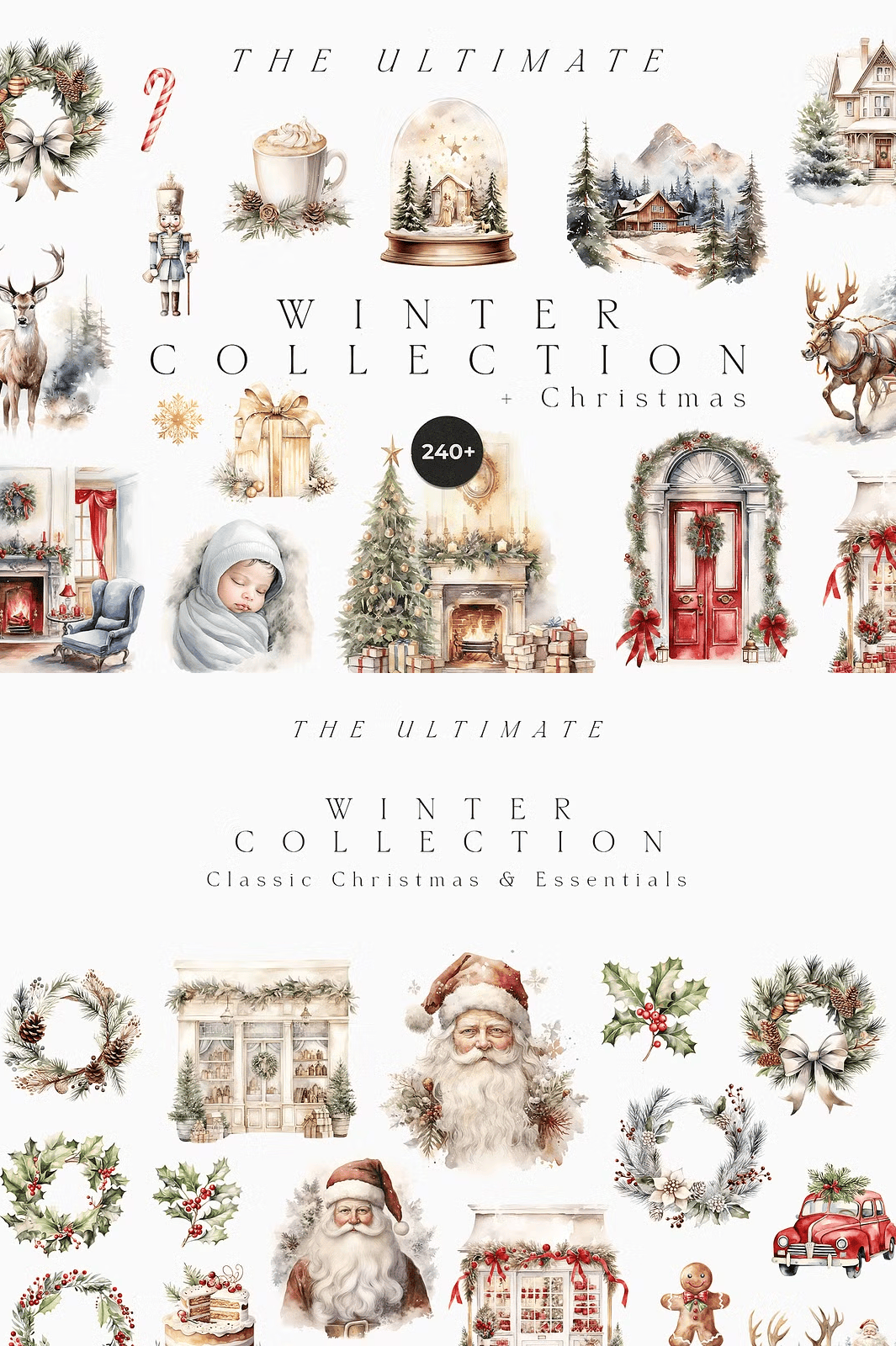 Transform your holiday projects with the **Ultimate Winter Collection + Christmas**—a meticulously crafted digital bundle featuring over 240 hand-painted, high-resolution watercolor illustrations. Designed in a soft, muted winter palette, this collection radiates quiet elegance and seasonal warmth. Every element is crafted for instant impact—perfect for wedding invitations, festive greeting cards, branding materials, and timeless stationery. From snow-dusted trees to cozy woodland scenes, these illustrations capture the soul of winter with delicate brushstrokes, rich textures, and timeless charm.