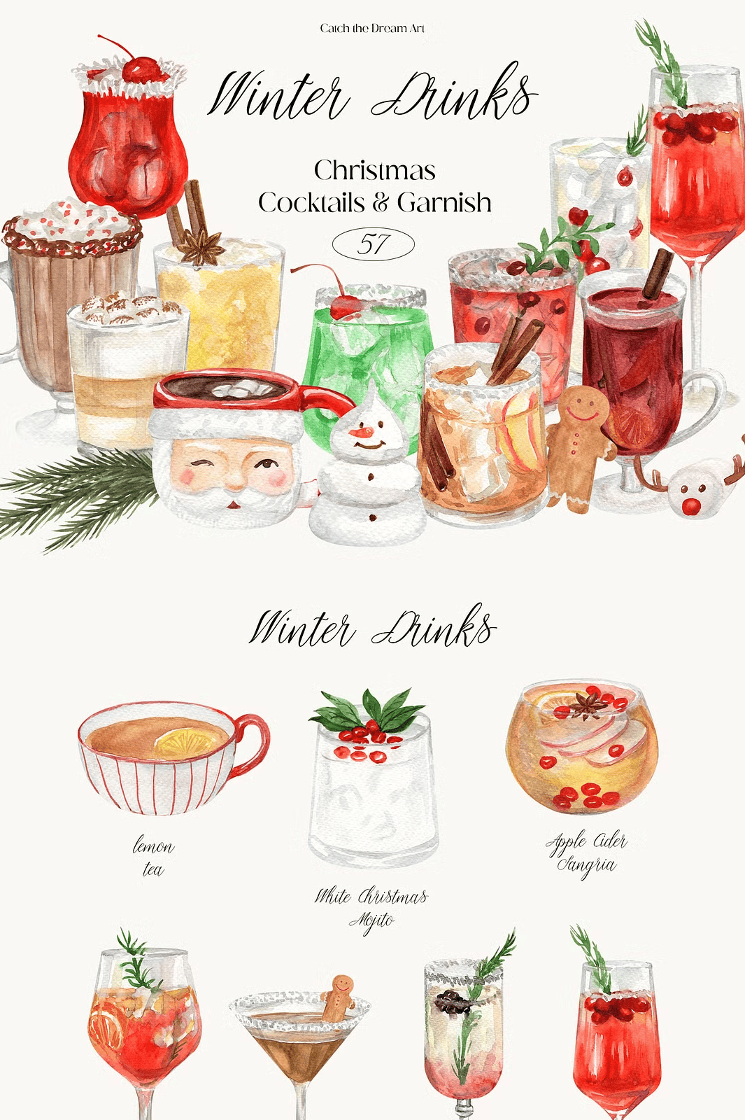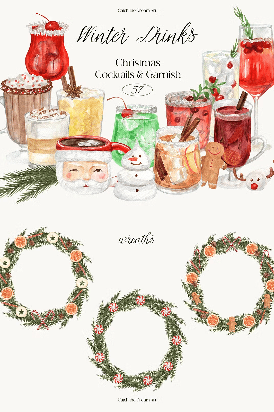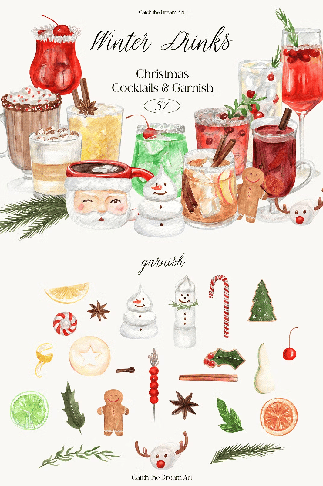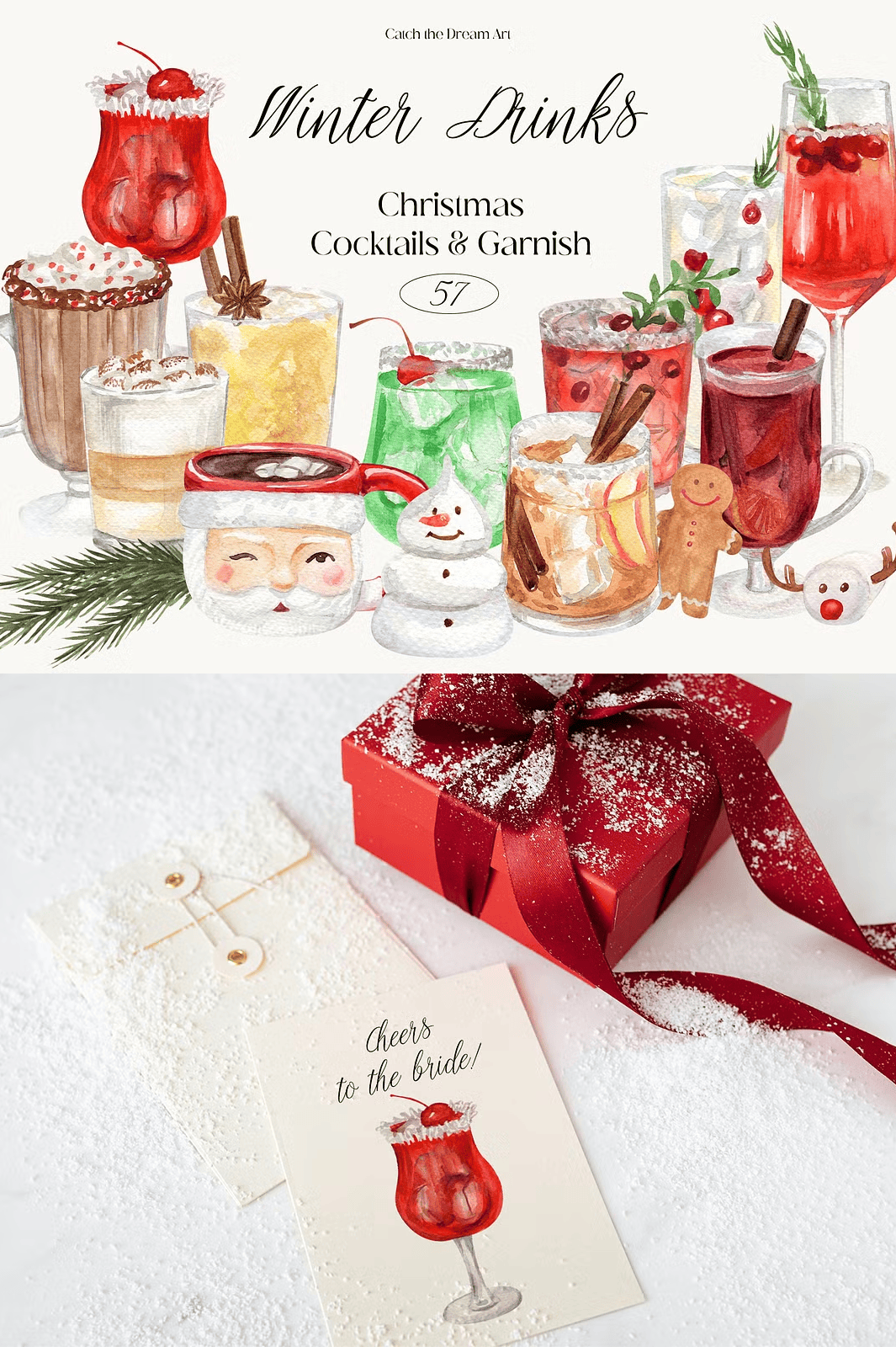 • 24 Cozy Garnish Elements — Perfect for topping drinks or adding festive flair. Includes cinnamon sticks, cranberry sprigs, peppermint sprigs, festive ribbons, pinecones, and more — all hand-drawn with holiday spirit.