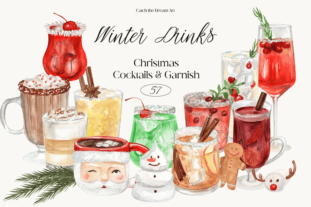 Transform your seasonal designs into magical moments with this exquisite winter drink collection. Each illustration is lovingly hand-painted in watercolor, capturing the warmth, sparkle, and elegance of winter celebrations. From fizzy champagne cocktails to steaming mugs of spiced cider, this set brings the joy of holiday gatherings directly to your creative projects. Whether you’re crafting Christmas menus, bar signage, festive posters, or merchandise, these premium visuals add instant charm and artistic depth.