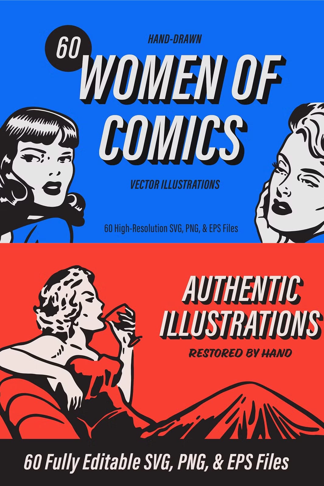 Dive into the rich visual history of vintage comic books and pulp novels with this exclusive collection of 60 hand-drawn retro illustrations. Each image has been meticulously restored by hand, preserving the authentic style and expressive flair of the 1950s and 1960s era. This comprehensive set brings classic imagery back to life, offering designers, artists, and enthusiasts an opportunity to incorporate timeless, nostalgic elements into their creative projects. The collection energizes your designs with lively, proven visuals that evoke a strong emotional connection to mid-century pop culture.