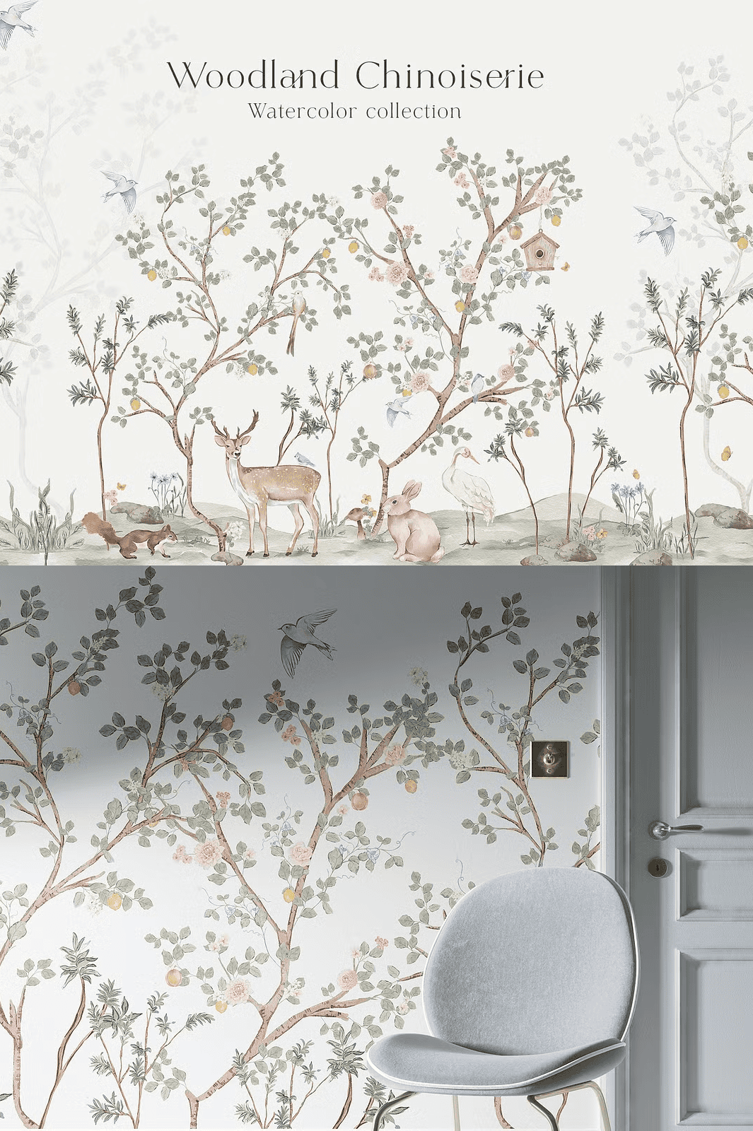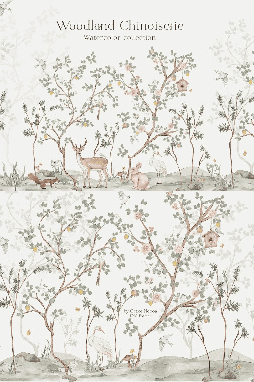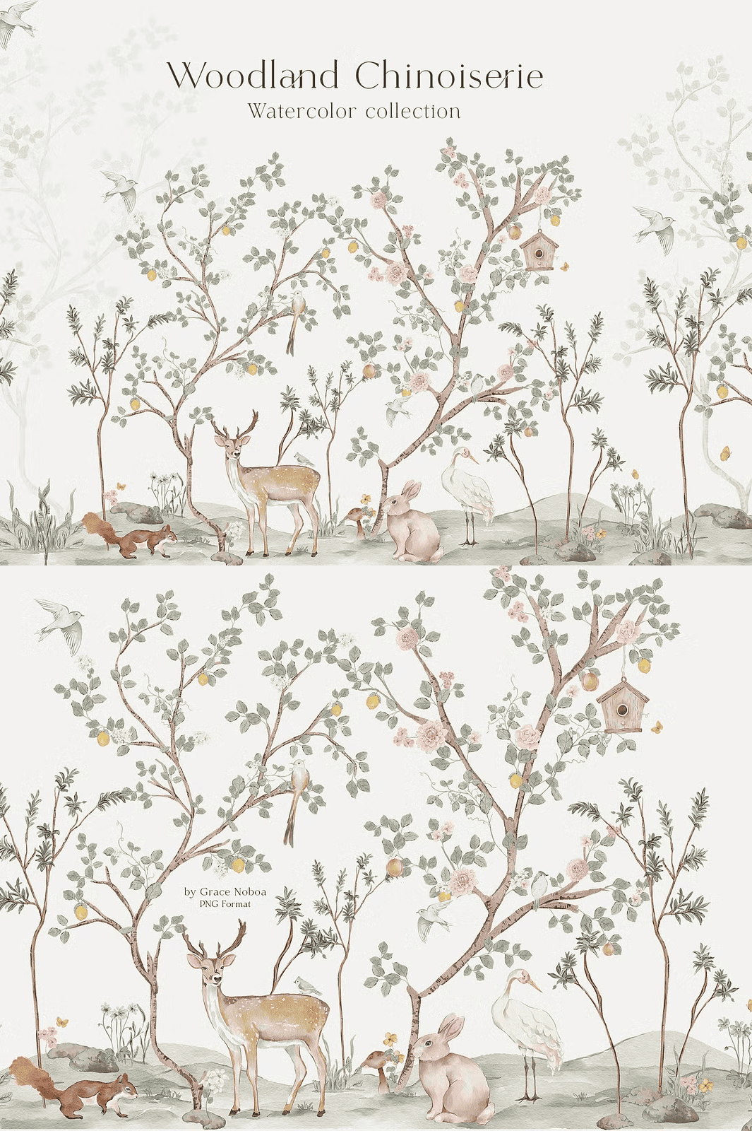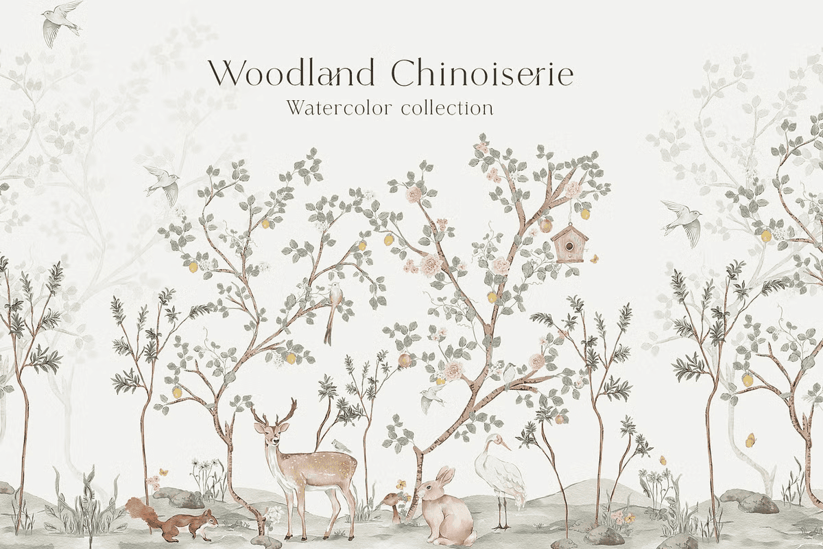 Transform your next design project with the Woodland Chinoiserie Hand-Painted Watercolor Collection — a breathtaking fusion of antique charm and nature’s quiet wonder. Inspired by classic chinoiserie murals and the intimate beauty of forest life, this premium set brings dreamy, storytelling elements to your creative palette. Each illustration is meticulously hand-painted with soft, flowing brushwork and delicate pastel tones, delivering a romantic, elevated aesthetic that feels both vintage and refreshingly modern.