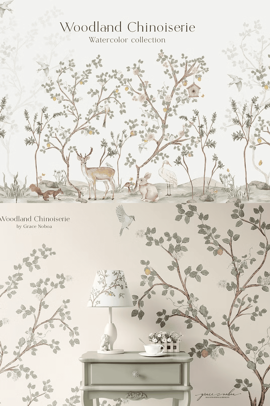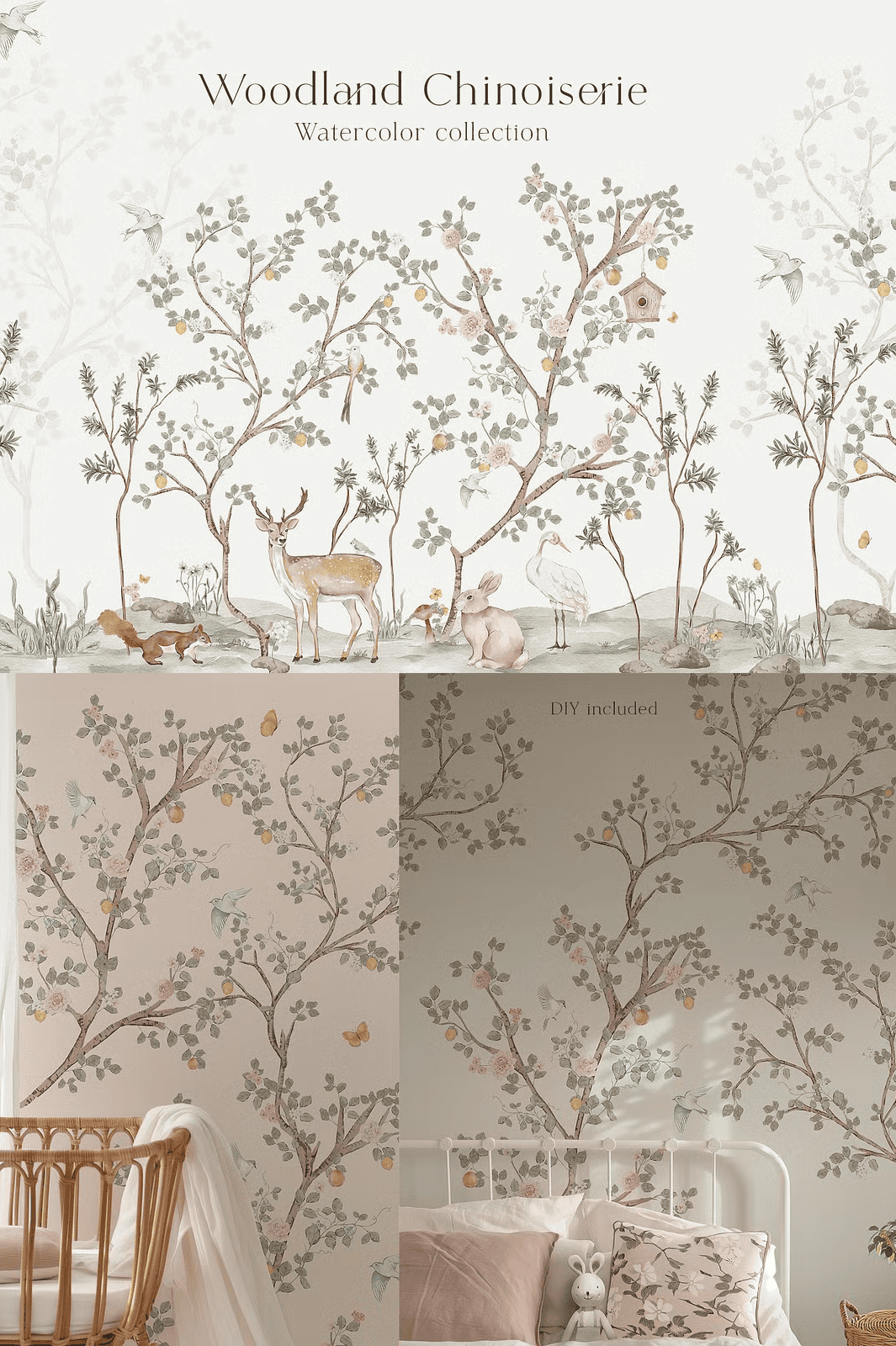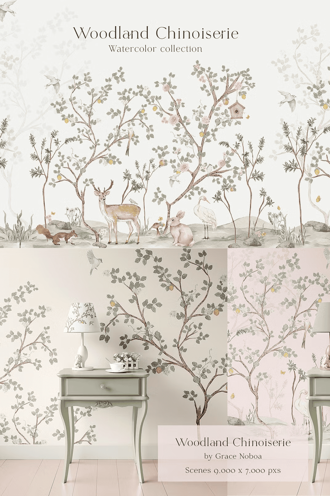 Transform your next design project with the Woodland Chinoiserie Hand-Painted Watercolor Collection — a breathtaking fusion of antique charm and nature’s quiet wonder. Inspired by classic chinoiserie murals and the intimate beauty of forest life, this premium set brings dreamy, storytelling elements to your creative palette. Each illustration is meticulously hand-painted with soft, flowing brushwork and delicate pastel tones, delivering a romantic, elevated aesthetic that feels both vintage and refreshingly modern.