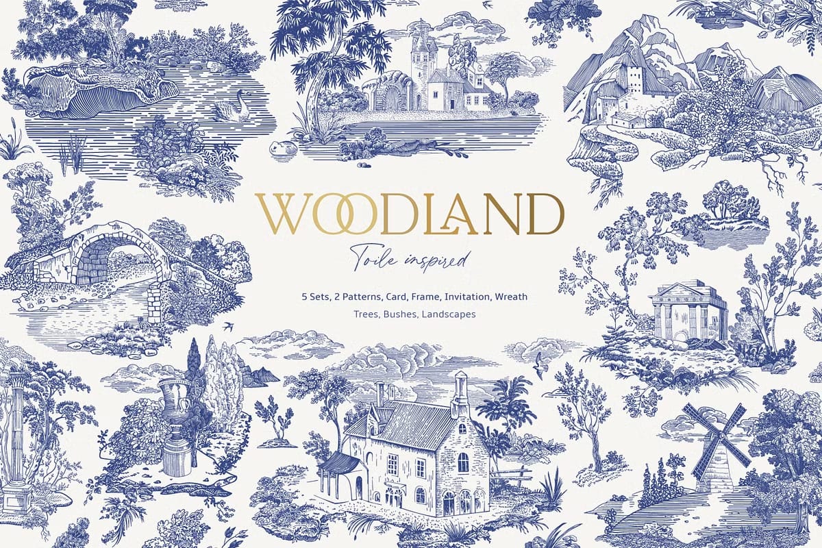 Enhance your creative library today with this sophisticated collection of Woodland Toile Black and White illustrations. Click the button below to download the complete set and begin incorporating timeless elegance into your design projects.