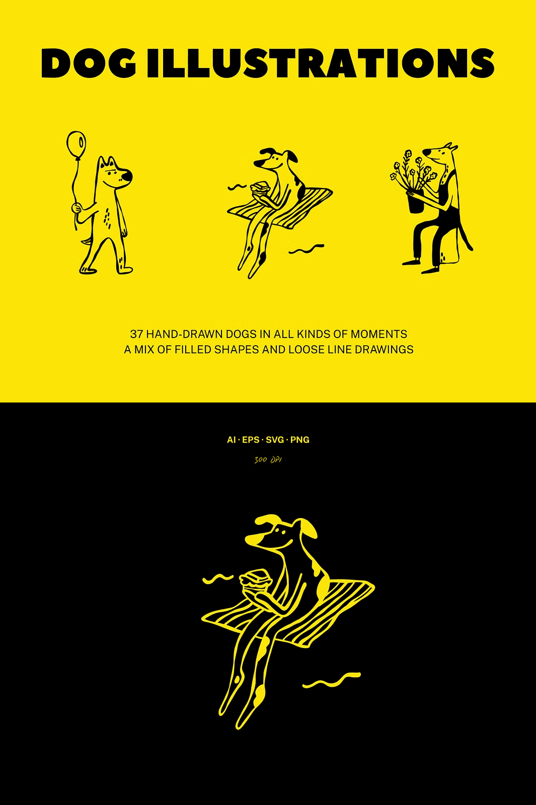 - 37 Individual Vector Illustrations: Each dog is meticulously crafted with unique expressions and postures—no repeats, no bland stock.