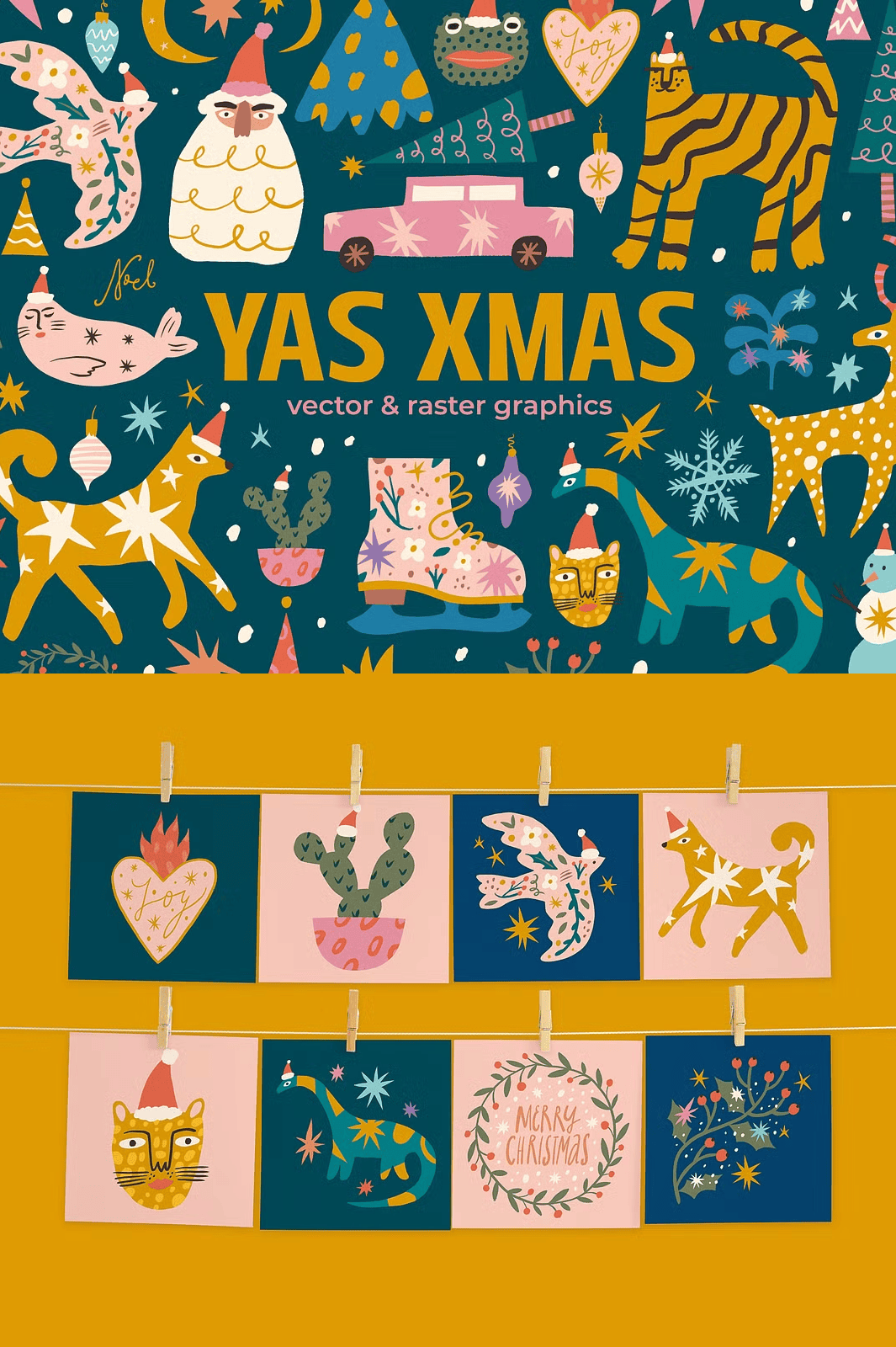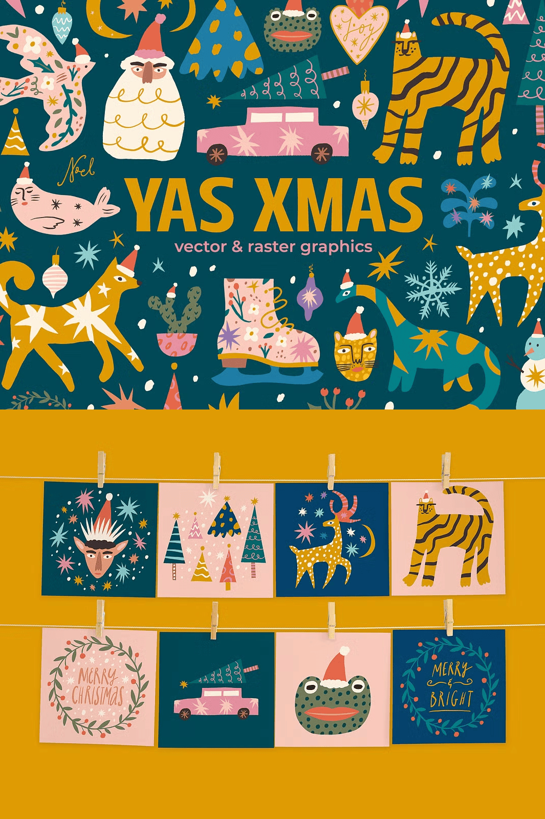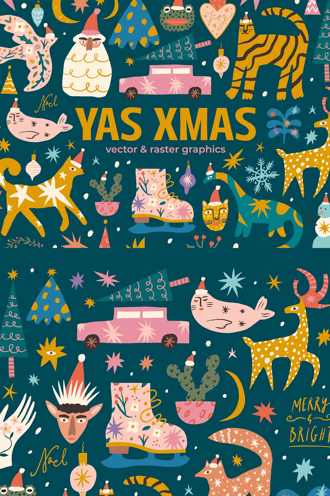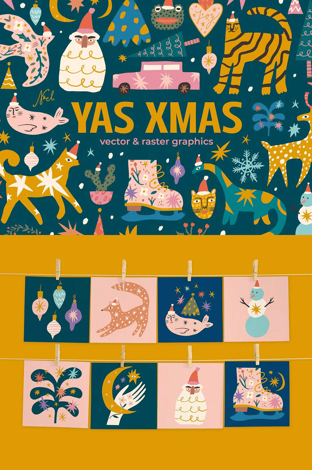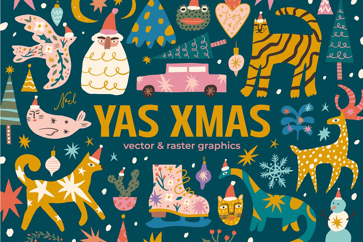 Elevate your holiday creativity with the **Yas Xmas Bundle**, a dynamic clip-art set that brings a fresh, funky vibe to Christmas and New Year celebrations. This collection combines the charm of boho Scandinavian style with playful cartoon characters and festive elements such as animals and seasonal motifs. Whether you are working on collages, postcards, party decorations, or branding materials, this bundle equips you with all the graphic assets needed for unforgettable holiday projects.